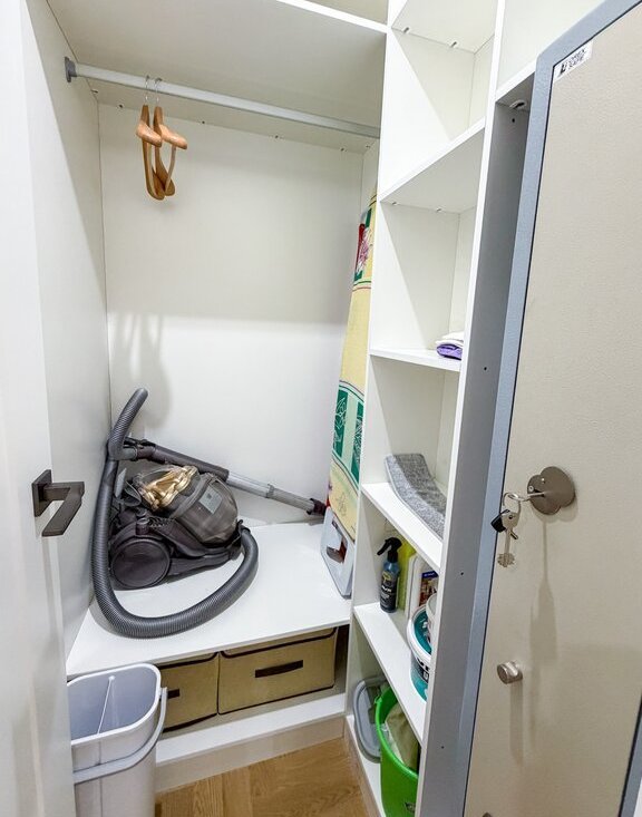 Комфорт в любую погоду. В каждой комнате установлен кондиционер — будет прохладно летом. Тёплый кирпичный дом с чистым подъездом и приличными соседями. Парковка во дворе с шлагбаумом.