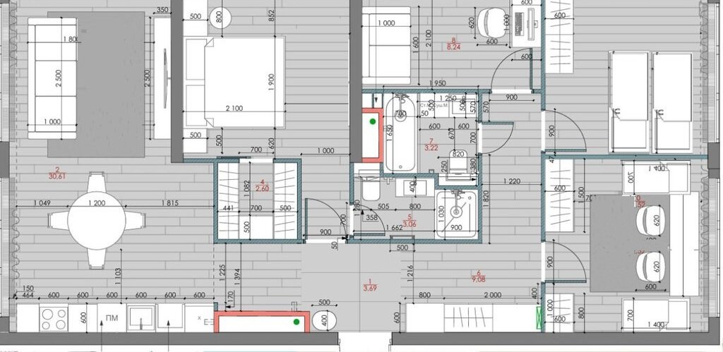Кухня-гостиная 30м, 2 санузла.