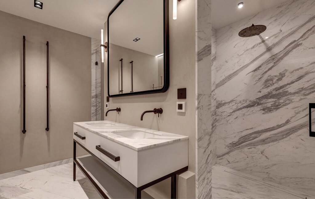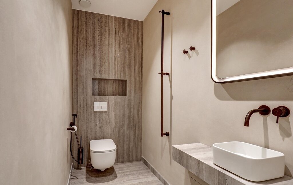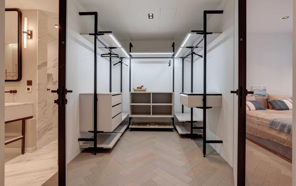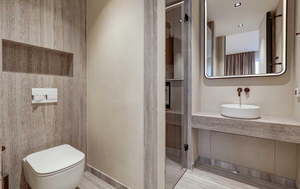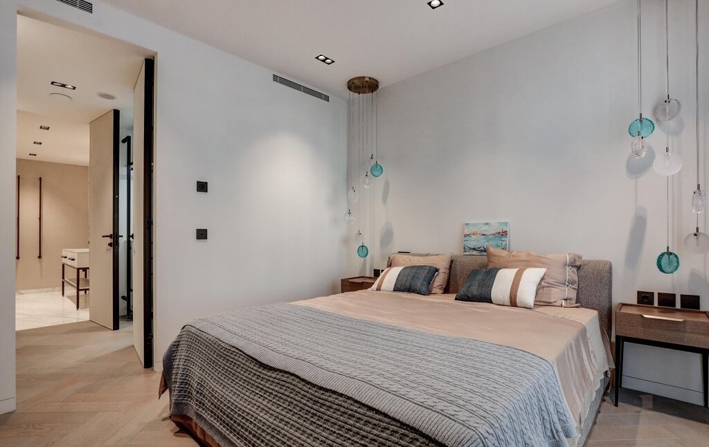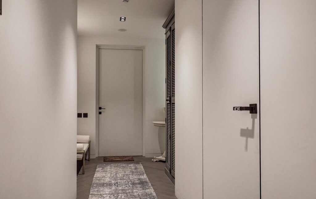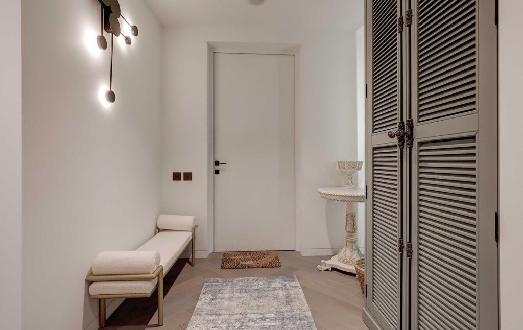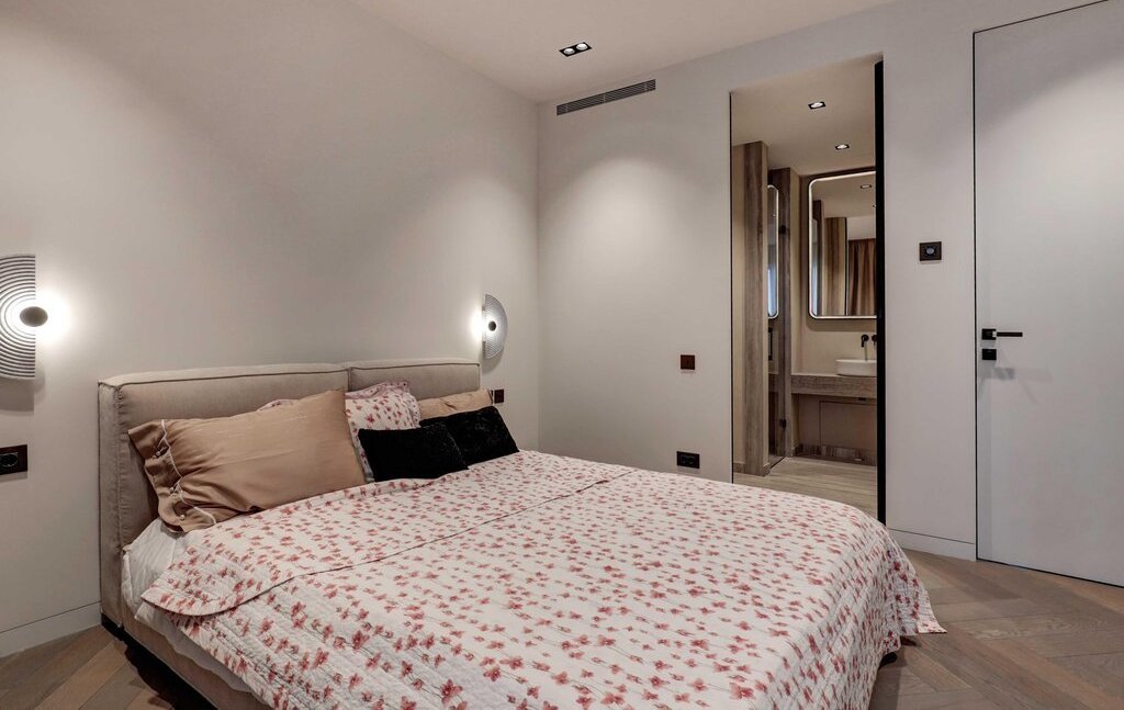 Квартира грамотно продумана: попадая в нее, вы оказываетесь в большой прихожей, там же расположена постирочная. Две спальни со своими санузлам - одна из которых мастер-спальня - находятся отдельно от общей зоны. Это обеспечит вам уединение и покой.