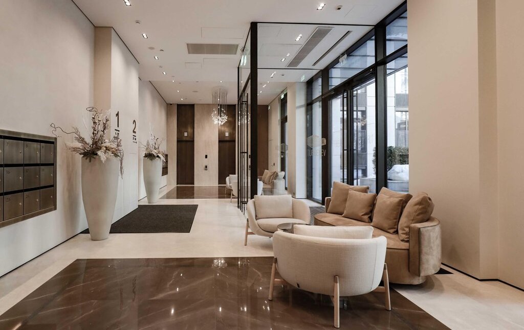 Огороженная территория комплекса "Turgenev" обеспечивает своим резидентам полную приватность. В доме широко развита инфраструктура: фитнес-зал с бассейном, ресторан, кинотеатр, сигарные и переговорные комнаты, на общей террасе дома в летнее время будет функционировать бар.