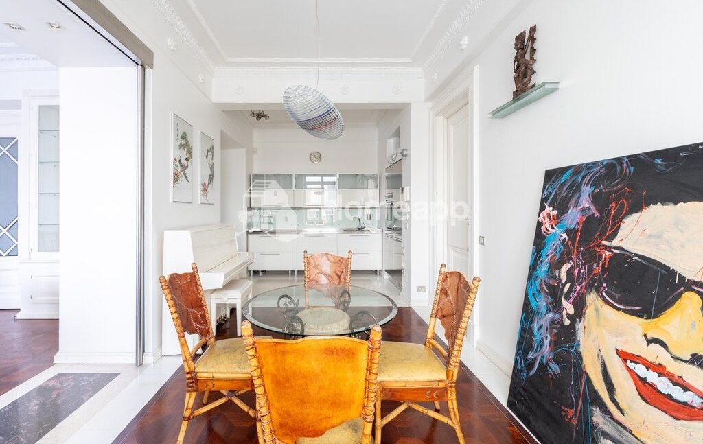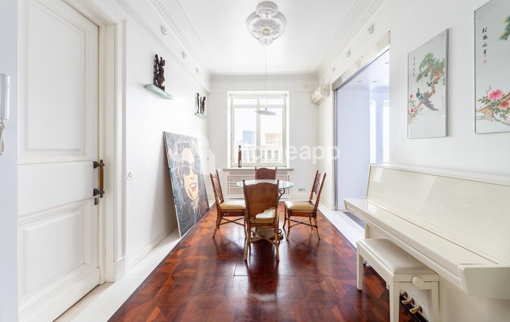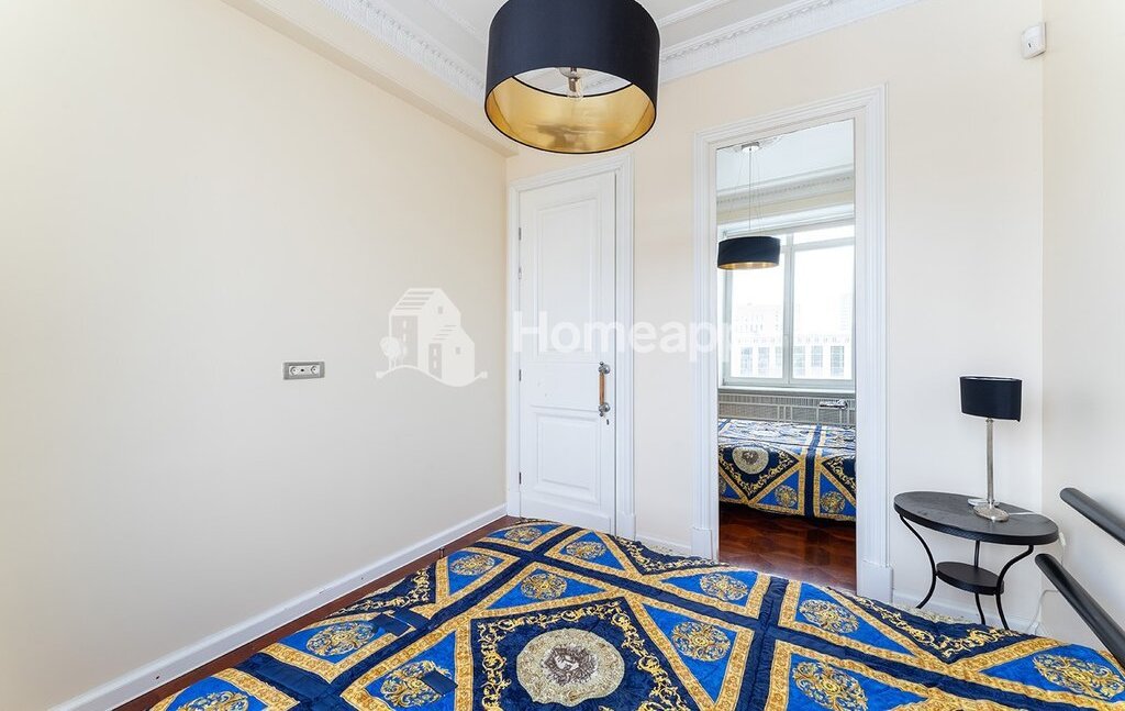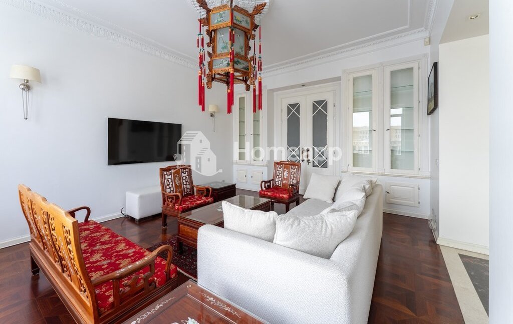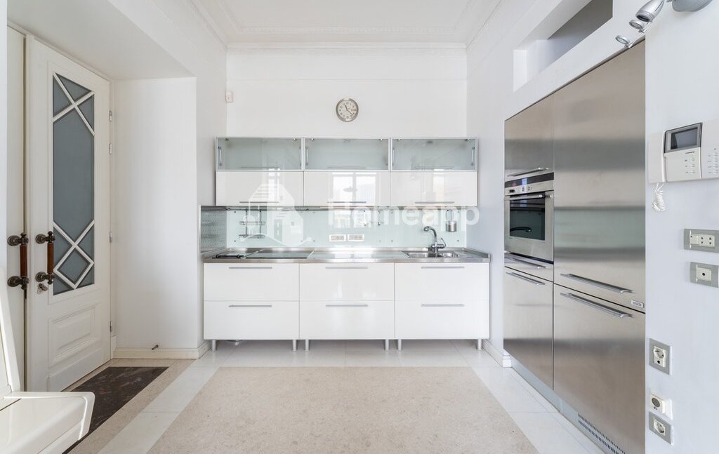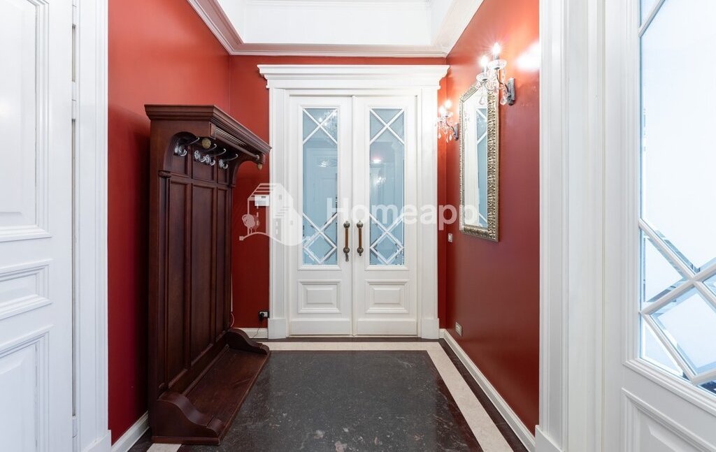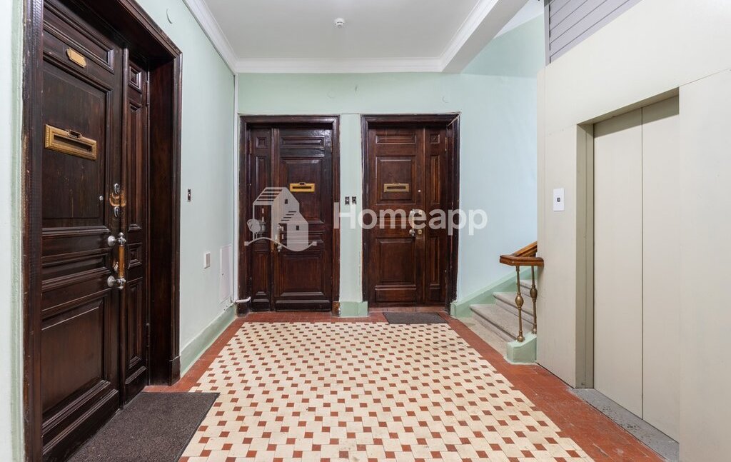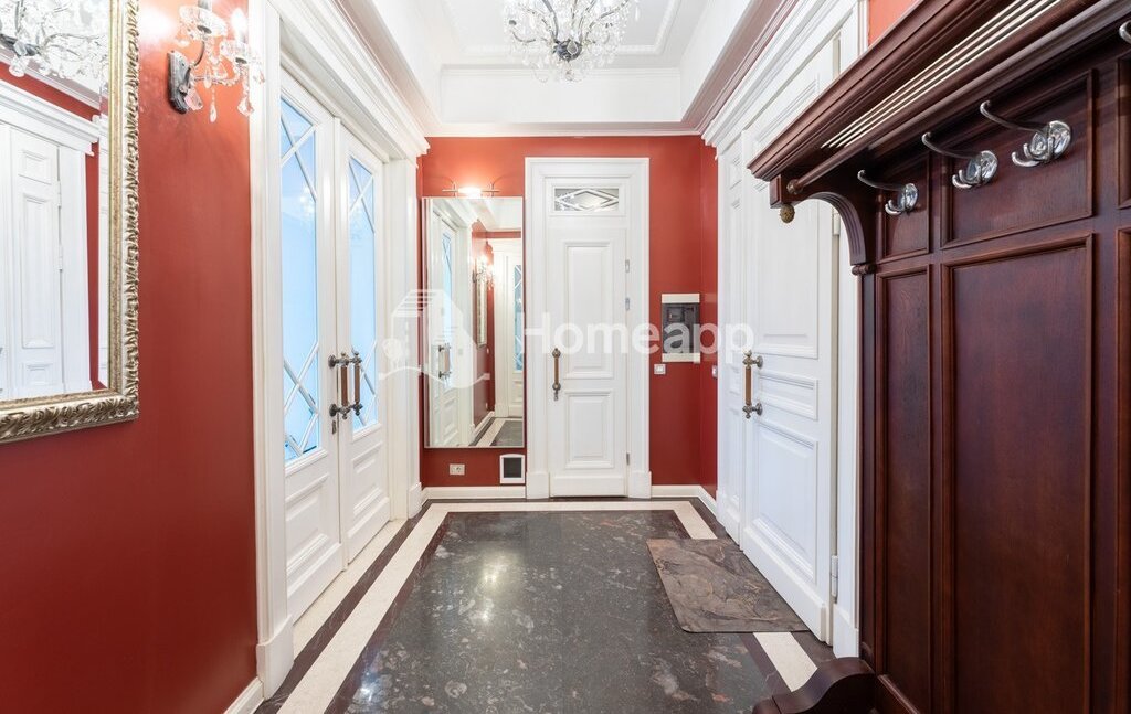 • Дух эпохи: Потолки 3.4 метра, отреставрированная лепнина. Двери, фурнитура, книжные шкафы и широкие подоконники — точные заказные копии исторических оригиналов.