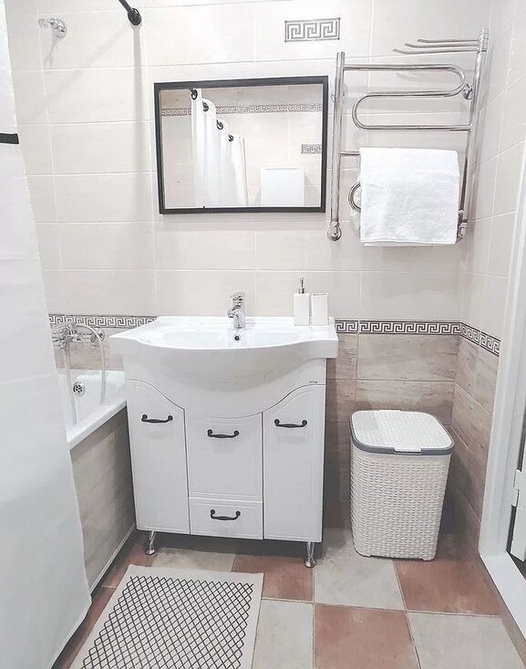 Техника: холодильник, электрическая духовка и варочная панель, посудомоечная машина, вытяжка, чайник, стиральная машина, 2 кондиционера, большой 4К smаrt ТV, мощный проточный водонагреватель (на период отключения горячей воды).