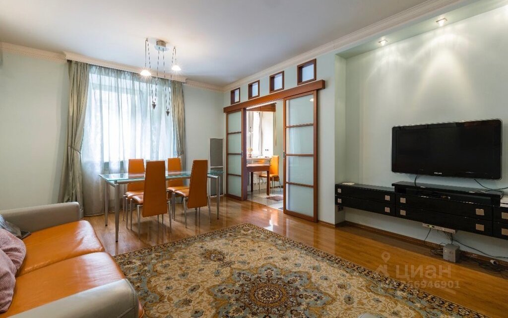 Отличная трехкомнатная квартира в центре Москвы с красивым, качественным ремонтом. Встроенная мебель, техника (холодильник Либхер, кондиционер, посудомоечная машина, духовка, микроволновка) теплый пол в ванной и кухне, гардеробная комната, балкон застеклен, На длительный срок. Закрытый двор, дрмофон. Рядом три станции метро, 10 мин. до Кремля, школа при МГУ, набережная Москва-реки.