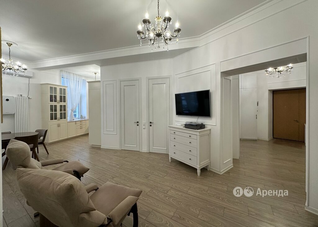 Сдаётся 3-комнатная квартира площадью 102 кв.м. с дизайнерским ремонтом на 4 этаже в 10-этажном доме на срок от 11 месяцев. Из техники есть: