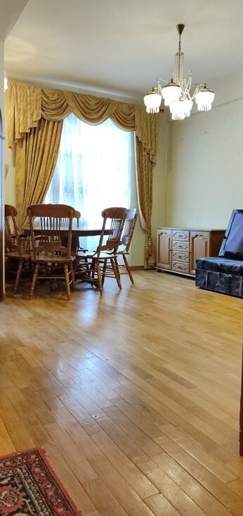 О квартире: 5 этаж, 80 кв.м, 3 комнаты, потолки 3.2м, 5 окон с видом на тихий зеленый двор (окна на две соседних стороны дома), 2 застекленных балкона, 1 лоджия.