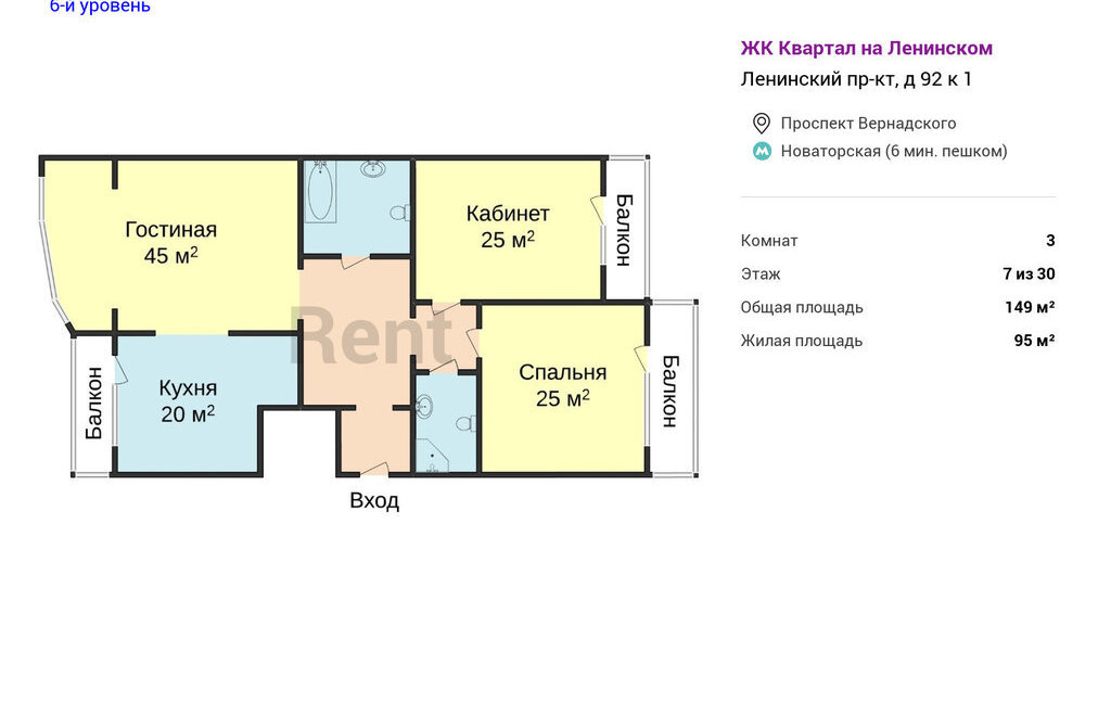 3-комнатная квартира: Москва, Ленинский проспект, 92к1 (149 м²)