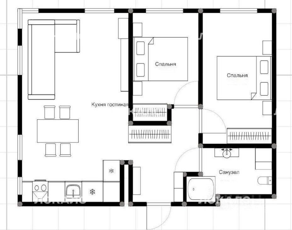 • Две спальни с двуспальными кроватями и шкафами-купе (встроенные датчики света).