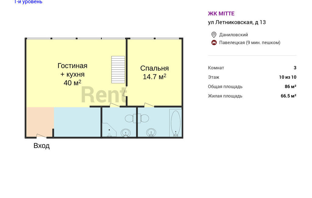 3-комнатная квартира: Москва, Летниковская улица, 13 (86 м²)