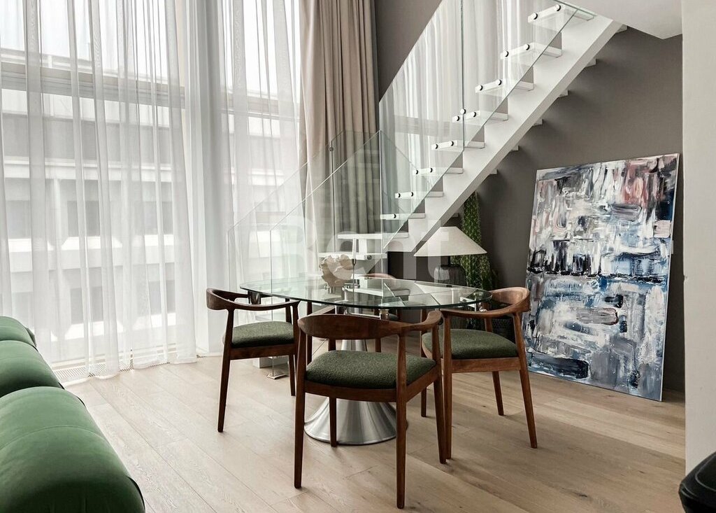Предлагается 3-комнатная квартира общей площадью 86 м² в ЖК "MITTE" недалеко от станции метро "Павелецкая". Высокие потолки увеличивают пространство, наполняя его светом. Для комфортного проживания в наличии имеется вся необходимая мебель, а также нагреватель воды. Кухонный гарнитур оснащен посудомоечной машиной. Окна обращены на улицу.