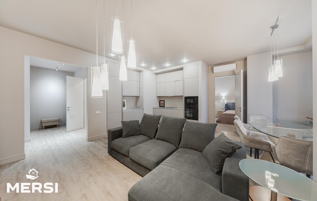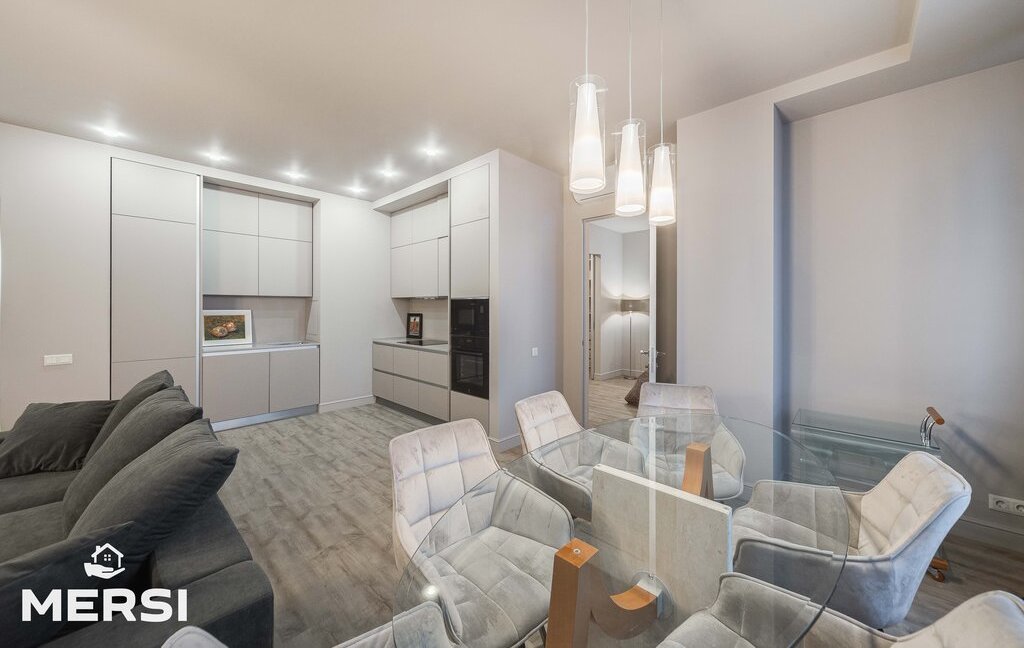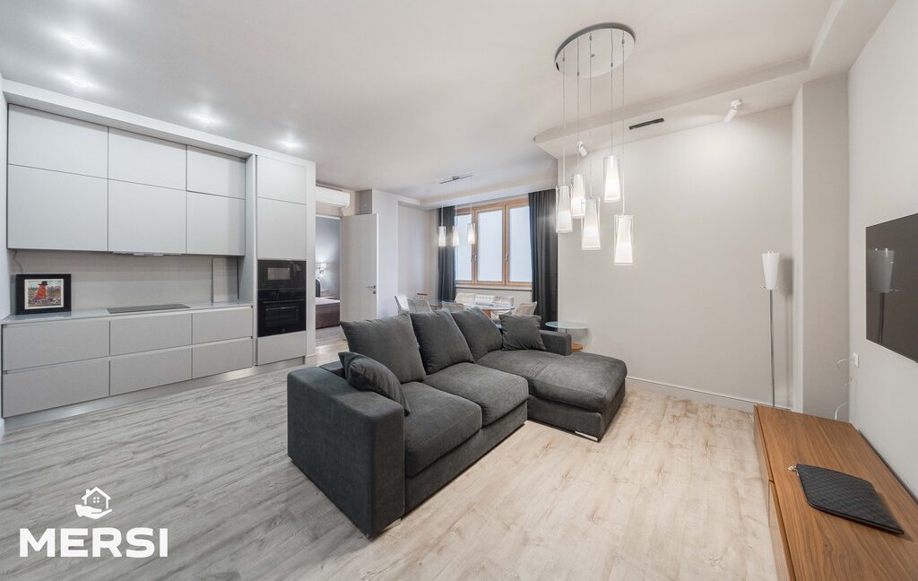СТИЛЬНАЯ квартира после свежего качественного ДИЗАЙНЕРСКОГО ремонта с использованием экологически чистых материалов. (на фото незавершенные интерьеры). Пол с подогревом. Полностью меблирована - мебель BoConcept. Функциональная планировка - СТУДИО: Кухня+гостиная - спальня с ГАРДЕРОБНОЙ комнатой - комната свободного назначения. ДВА ПОЛНОЦЕННЫХ САНУЗЛА - ванна, душевая кабина. Постирочная (стиральная машина Miele). Шкафы-купе. ГАРДЕРОБНАЯ КОМНАТА. Много мест хранения. Сплит-система кондиционирования. Кухня со всей необходимой встроенной техникой, в том числе посудомоечная машина, от ведущих компаний. Лоджия. Высокий этаж.