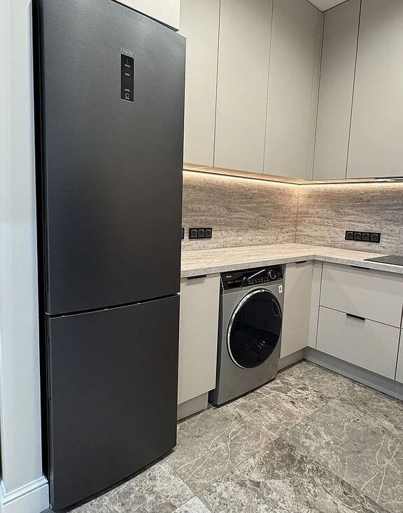 - Кухня - столовая оснащена всей необходимой, новой техникой Наiеr: холодильник, посудомоечная машина, стиральная машина, микроволновая печь, духовой шкаф, индукционная плита, вытяжка.