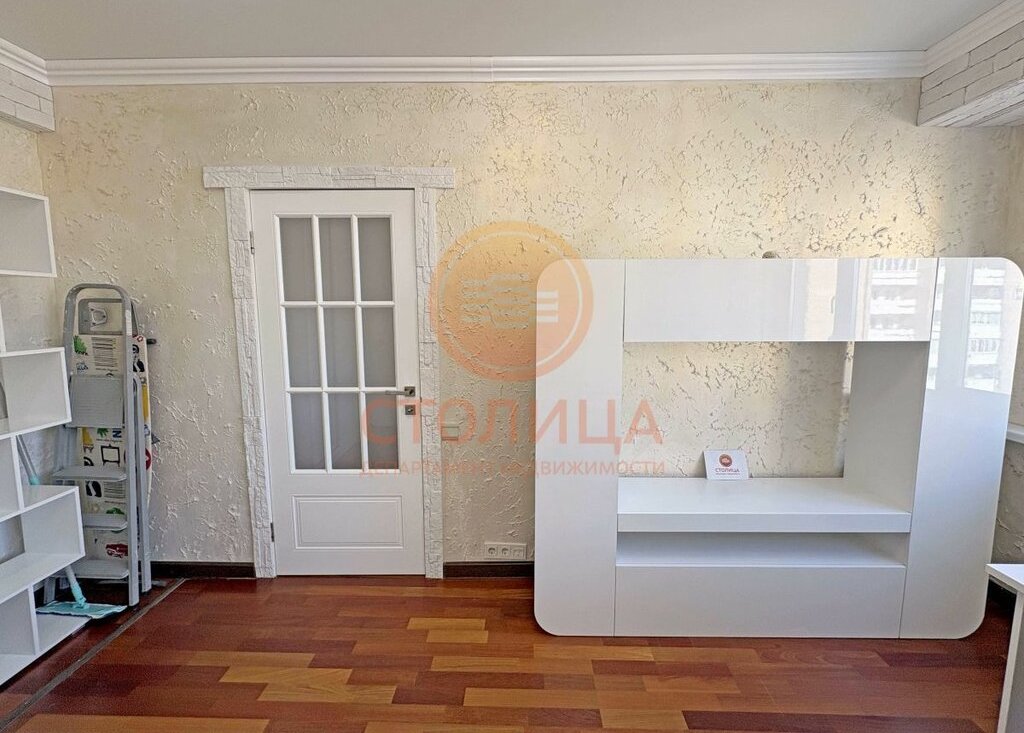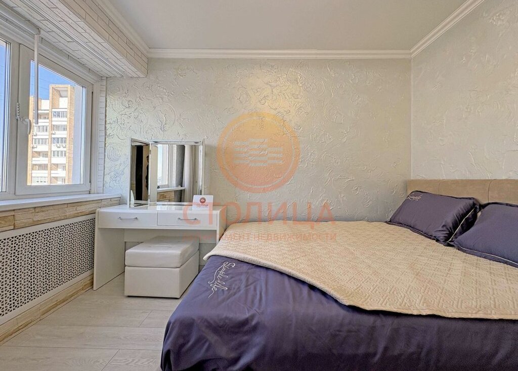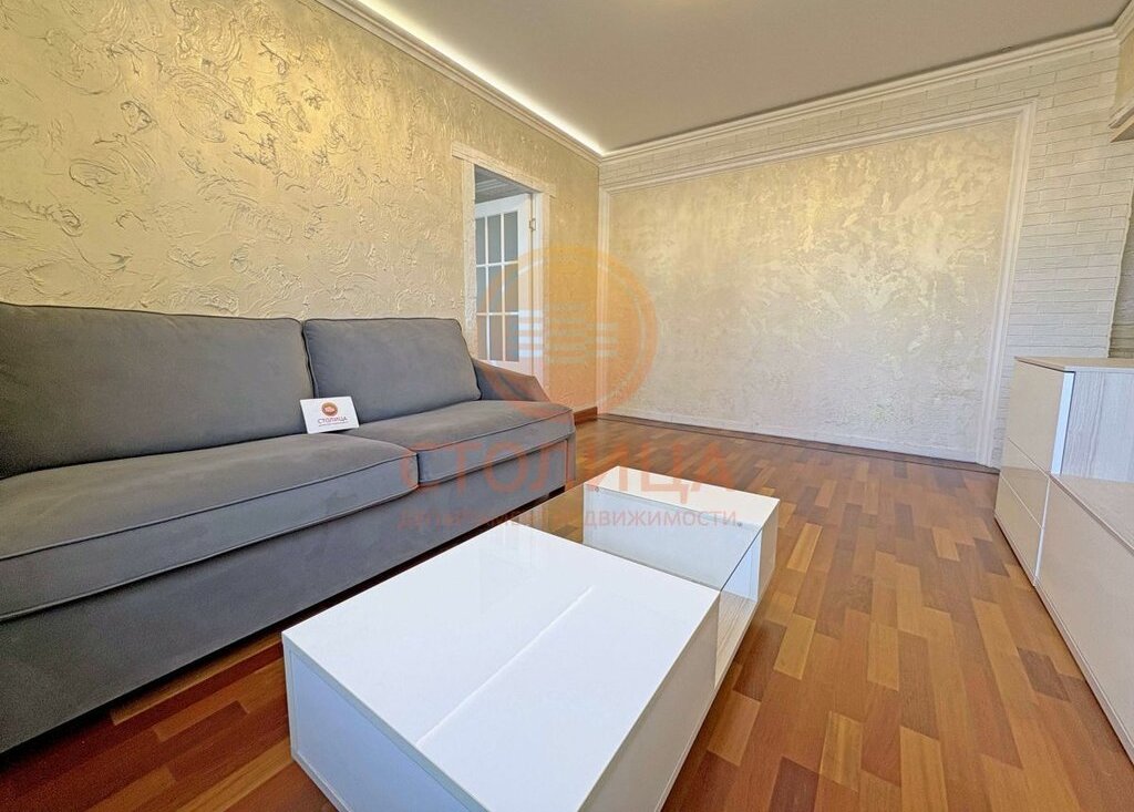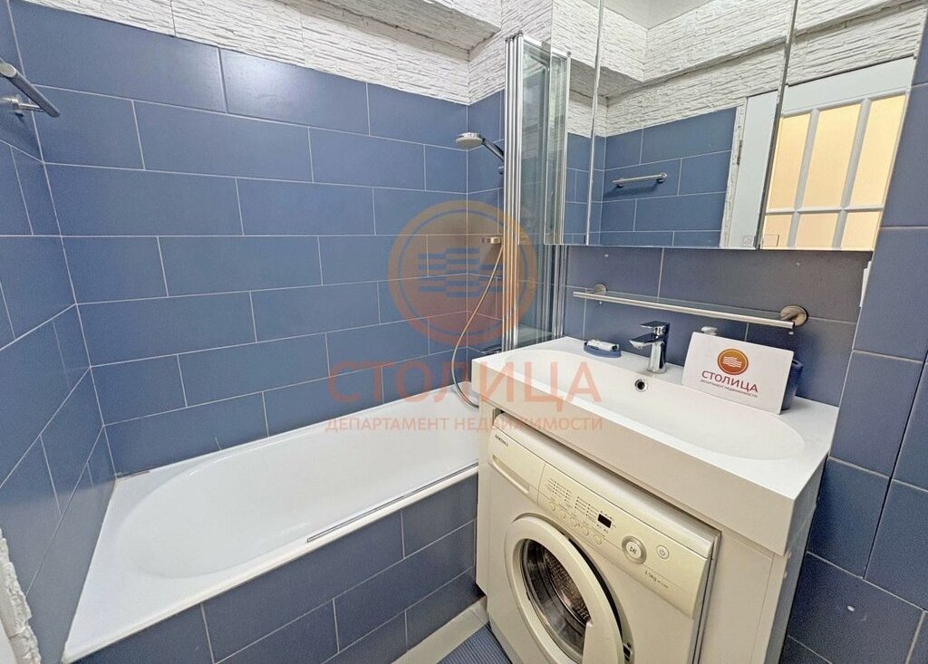 Планировка включает: кухню, спальню, проходную гостиную, кабинет и совмещённый санузел. В квартире есть вся необходимая мебель и техника для комфортного проживания. Во дворе предусмотрена охраняемая парковка под шлагбаумом. Район отличается развитой инфраструктурой.