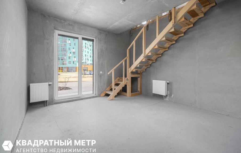 На первом этаже расположена просторная комната 19,7 м² с выходом прямо на улицу и санузел 3,2 м². Уникальная комната, в которой можно реализовать кухню (есть все необходимые коммуникации), рабочее пространство для творчества, студию дизайна либо мастерскую индивидуального пошива одежды, — все ограничивается лишь вашей фантазией.
