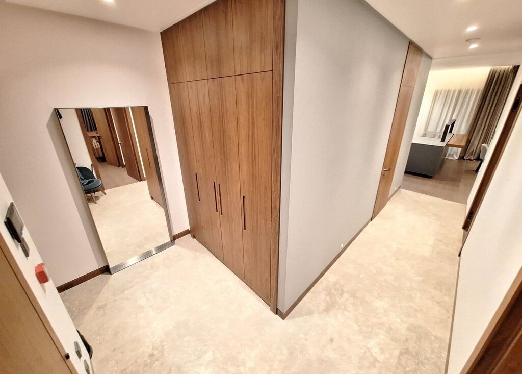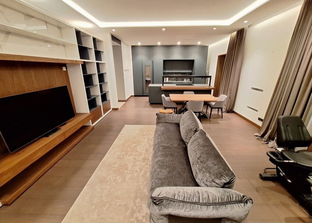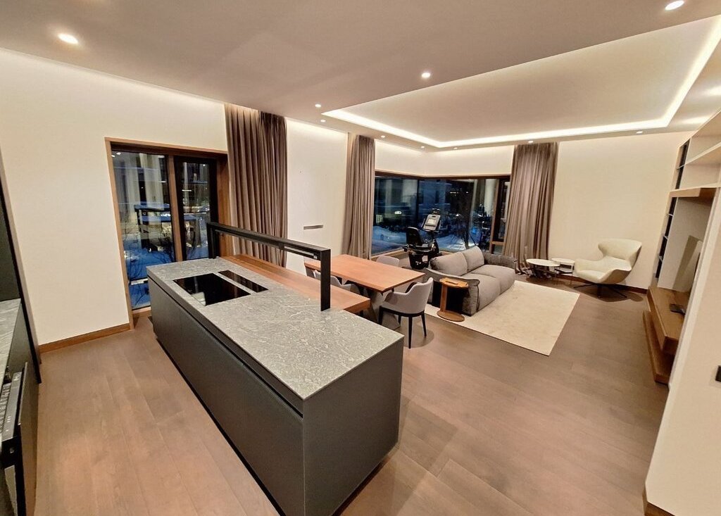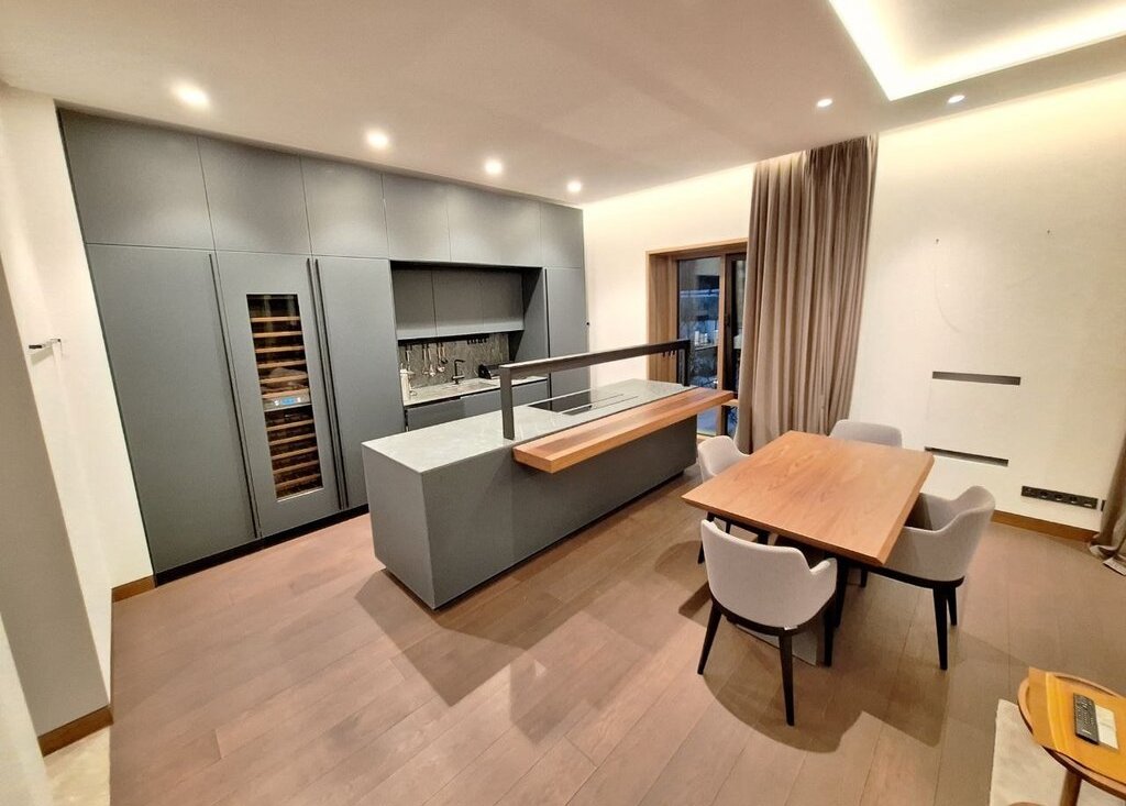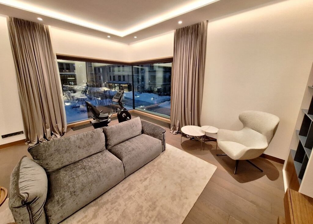 Квартира полностью укомплектована современной мебелью и техникой от ведущих производителей. Панорамные окна в пол с видом во двор, очень тихо. Кондиционеры. Приточная система очистки воздуха. Подогрев полов. Вместительные шкафы, большое количество мест хранения. Качественная, дорогая сан техника. Кухонный гарнитур. Посудомоечная машина. Винный шкаф. Два холодильника. Морозильная камера. Стиральная и сушильная машина Miele. Система умный дом. Видео домофон.