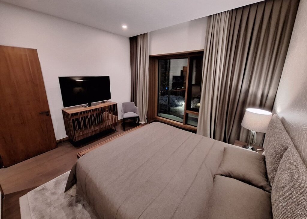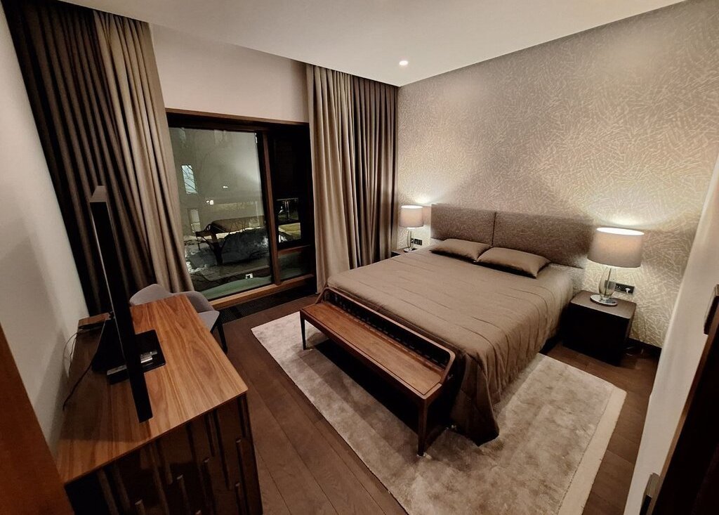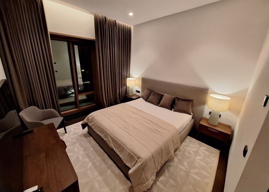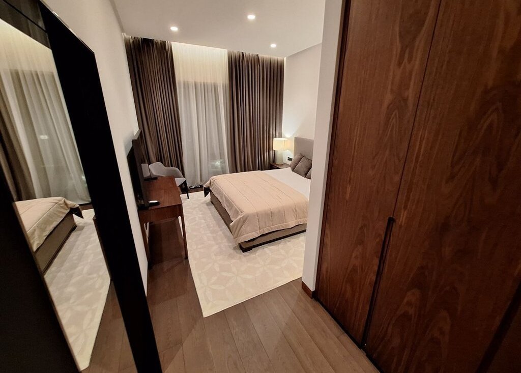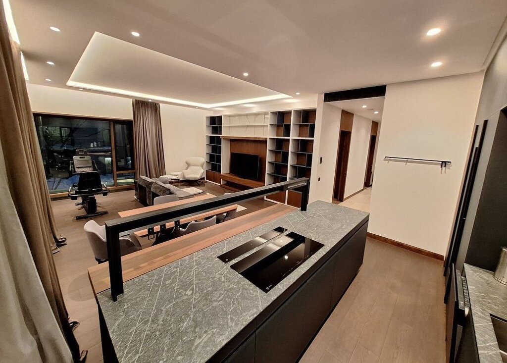 Квартира полностью укомплектована современной мебелью и техникой от ведущих производителей. Панорамные окна в пол с видом во двор, очень тихо. Кондиционеры. Приточная система очистки воздуха. Подогрев полов. Вместительные шкафы, большое количество мест хранения. Качественная, дорогая сан техника. Кухонный гарнитур. Посудомоечная машина. Винный шкаф. Два холодильника. Морозильная камера. Стиральная и сушильная машина Miele. Система умный дом. Видео домофон.
