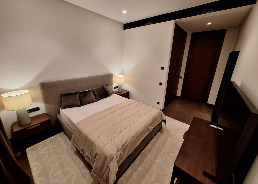 В аренду предлагается прекрасная, светлая, уютная, большая квартира с ДИЗАЙНЕРСКИМ РЕМОНТОМ. Функциональная планировка: кухня-гостиная - мастер спальня со своим санузлом ( душевая ) - спальня или кабинет ( при необходимости кровать можем убрать ) - полноценный санузел с ванной и душевой - прачечная.