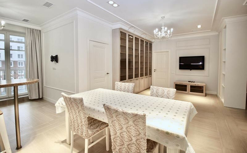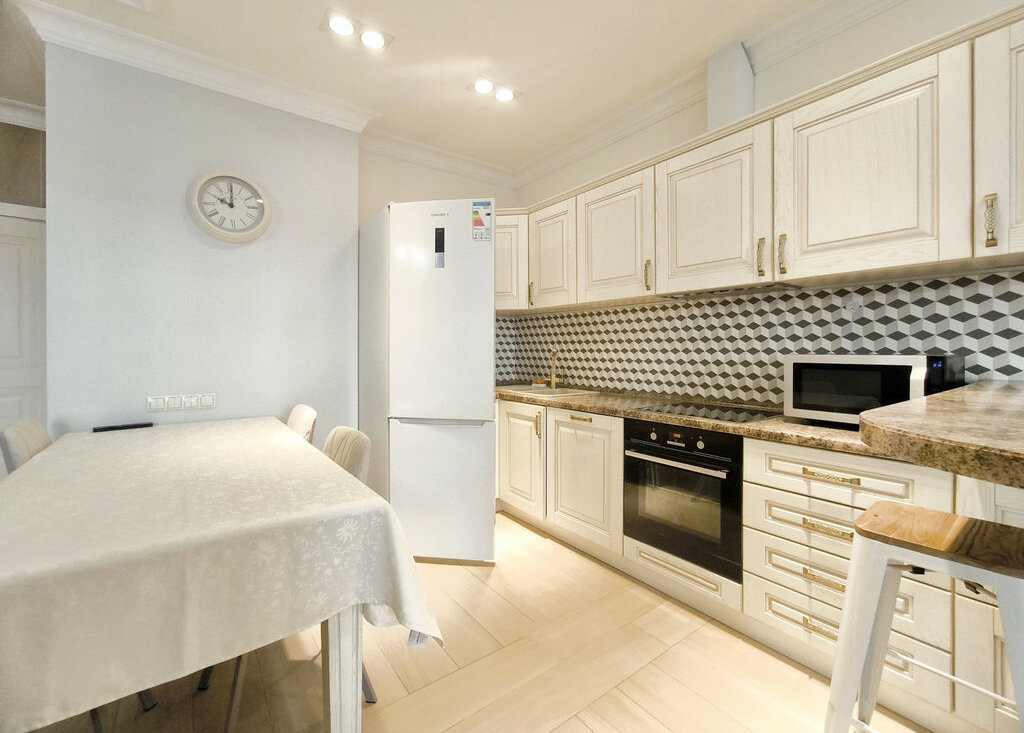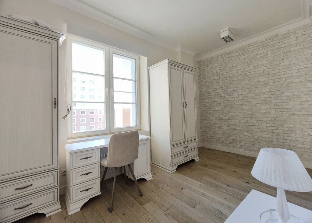 Предлагается светлая 3х комнатная квартира после дизайнерского ремонта, укомплектована современной мебелью и необходимой бытовой техникой, включая посудомоечную машину, кофемашину и кондиционер. Просторная кухня в едином пространстве с гостиной, 2 совмещенных санузла, спальня, кабинет (детская комната), гардеробная, пластиковые окна, застекленный балкон, телевидение, интернет.