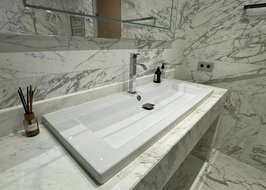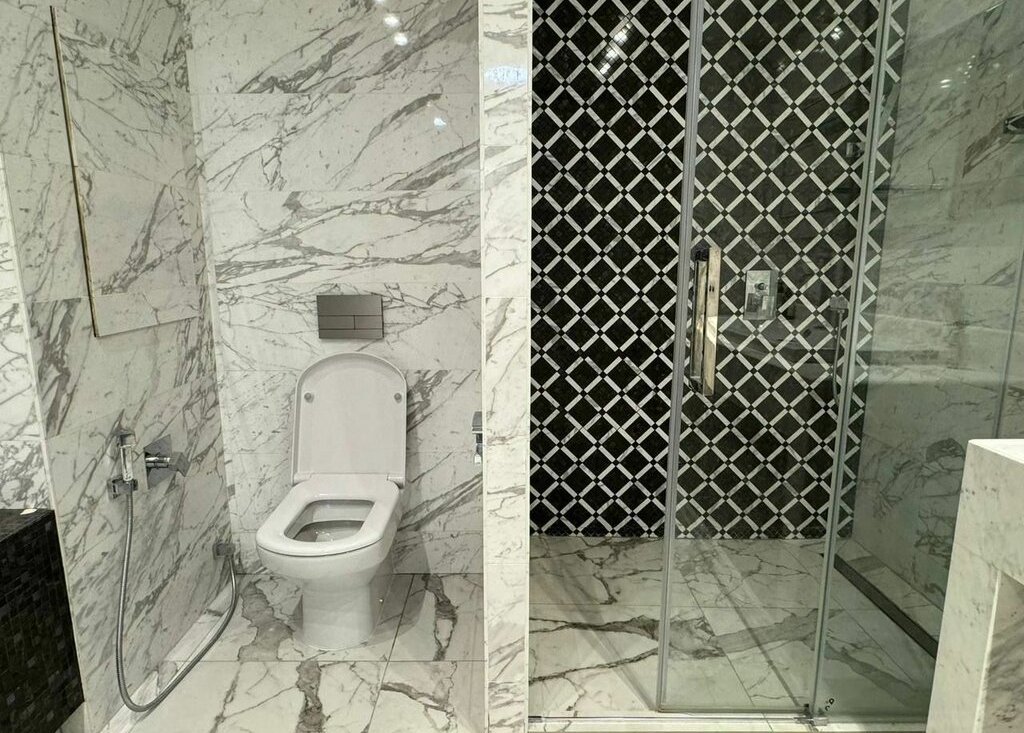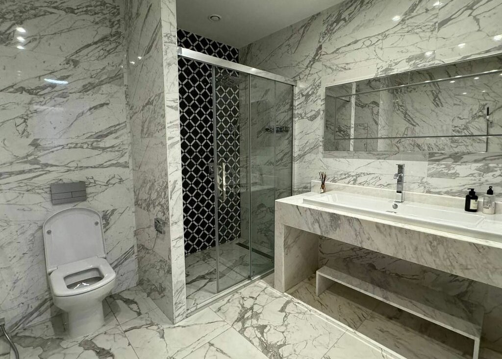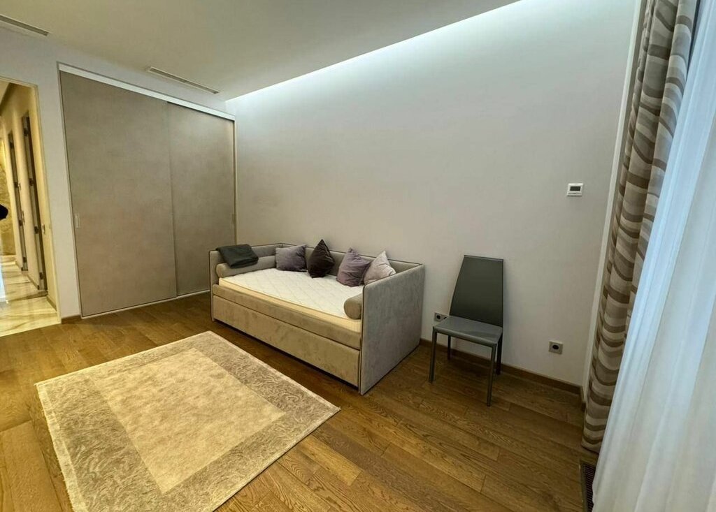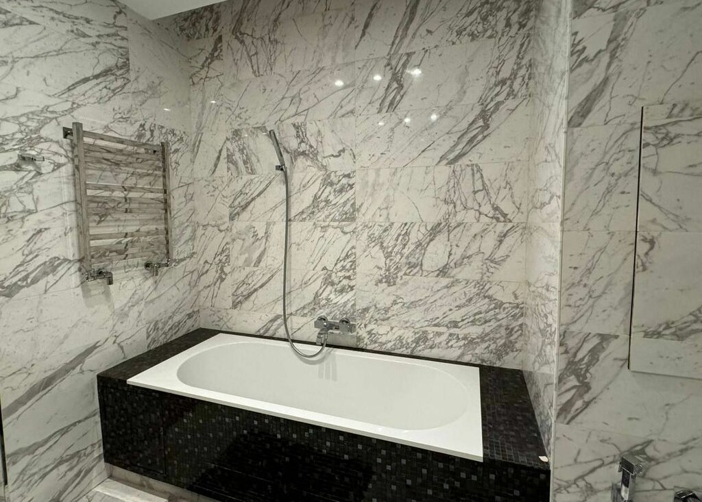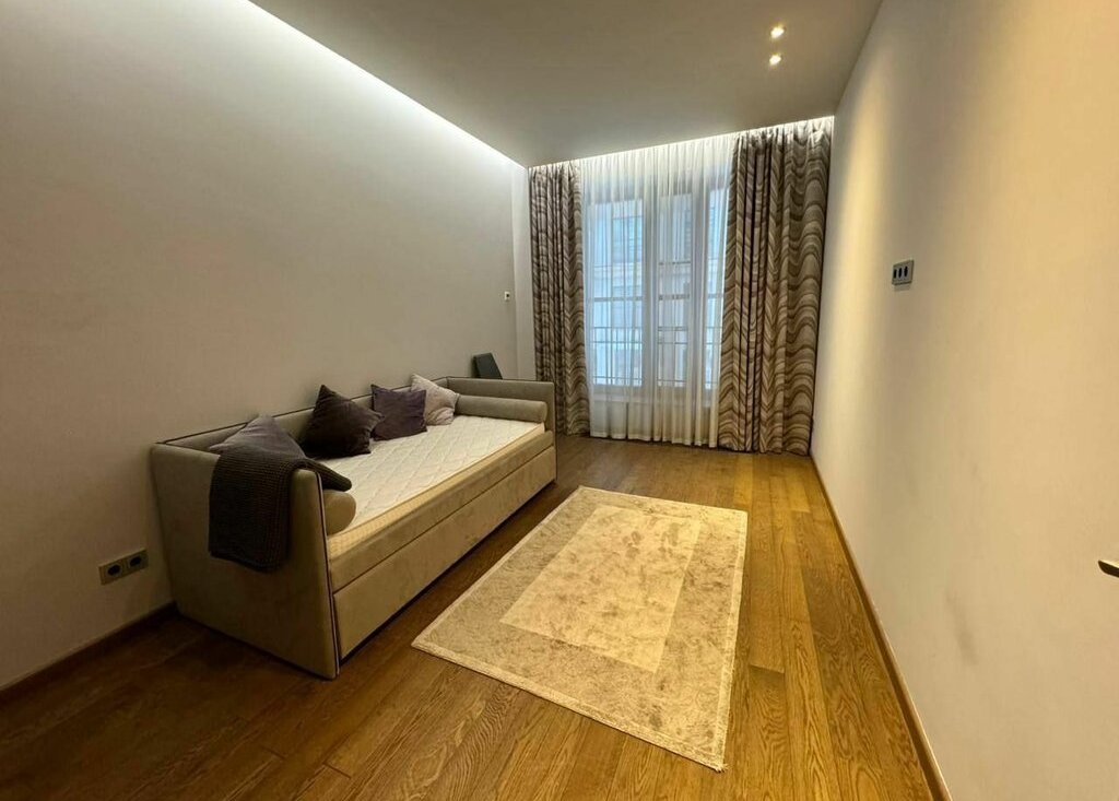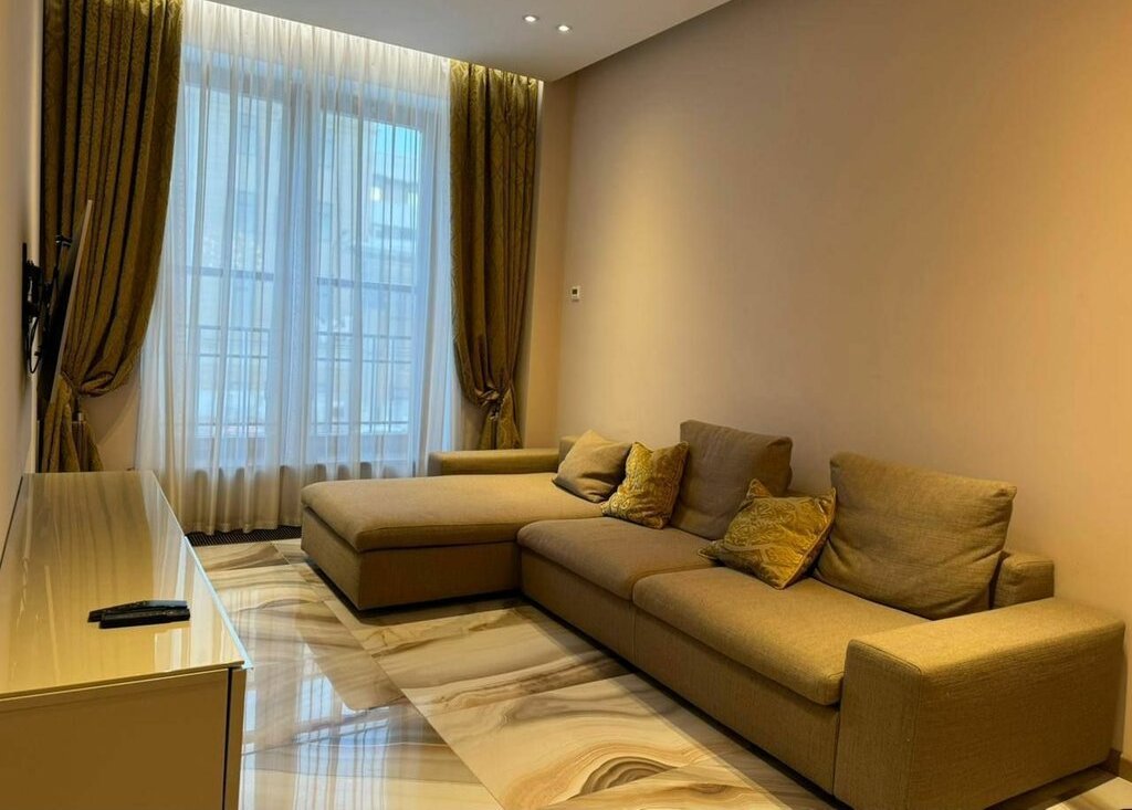 Общая площадь составляет 100 кв.м., в квартире 3 комнаты, 2 санузла, постирочная. В отделке использовались лучшие материалы. Квартира полностью мебелирована и готова к проживанию.