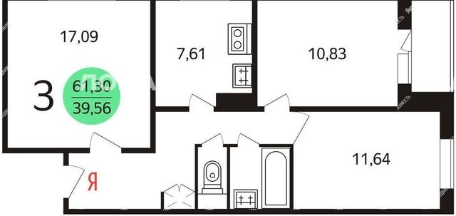 О квартире: Общая площадь 61,2 кв.м с удобной планировкой, все комнаты изолированные (17,1; 11,7; 10,8 м2), кухня 7,6 м2, удобная остекленная лоджия; два пассажирских лифта.