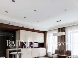 В квартире выполнена качественная отделка в современном стиле. Удобное и функциональное планировочное решение: гостиная с зоной кухни, спальня, гостевая комната/кабинет, большой совмещенный санузел с ванной и душевой кабиной, гардеробная в холле.
