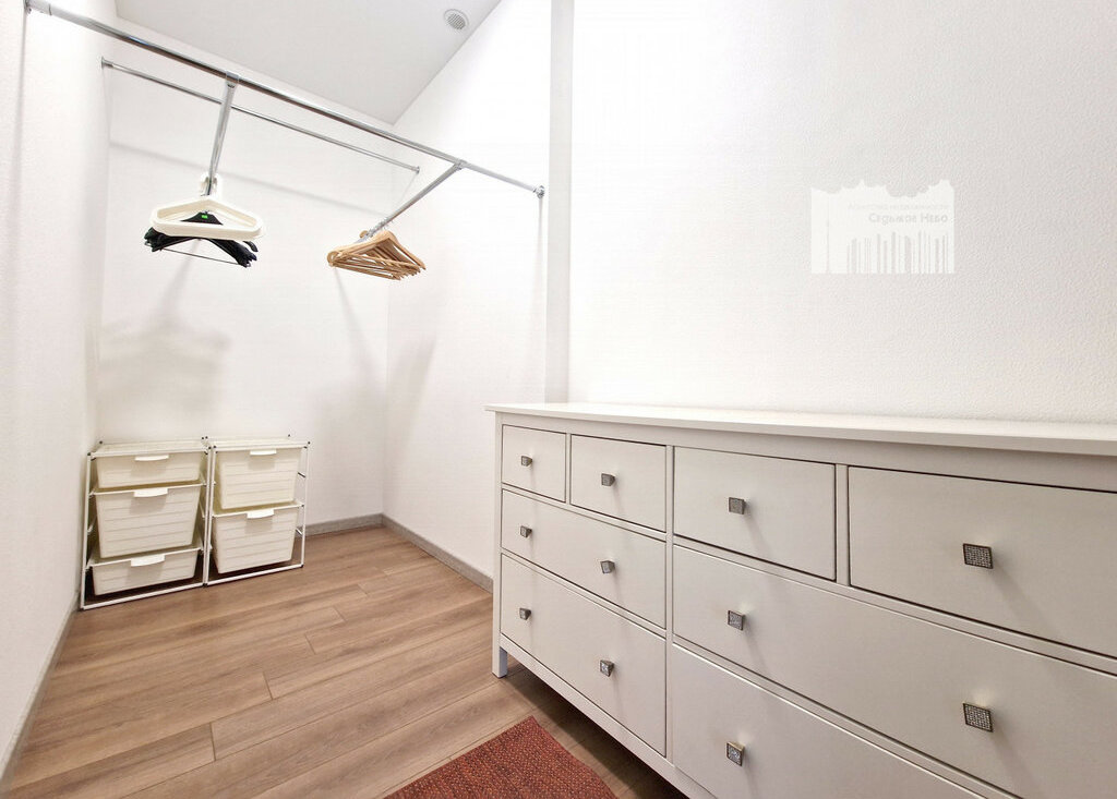 Квартира имеет формат Евро-4 (две изолированные спальни - в одной из которых большая гардеробная комната, два санузла, кабинет и кухня-гостиная)