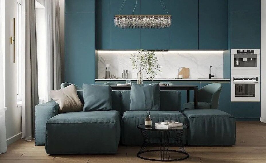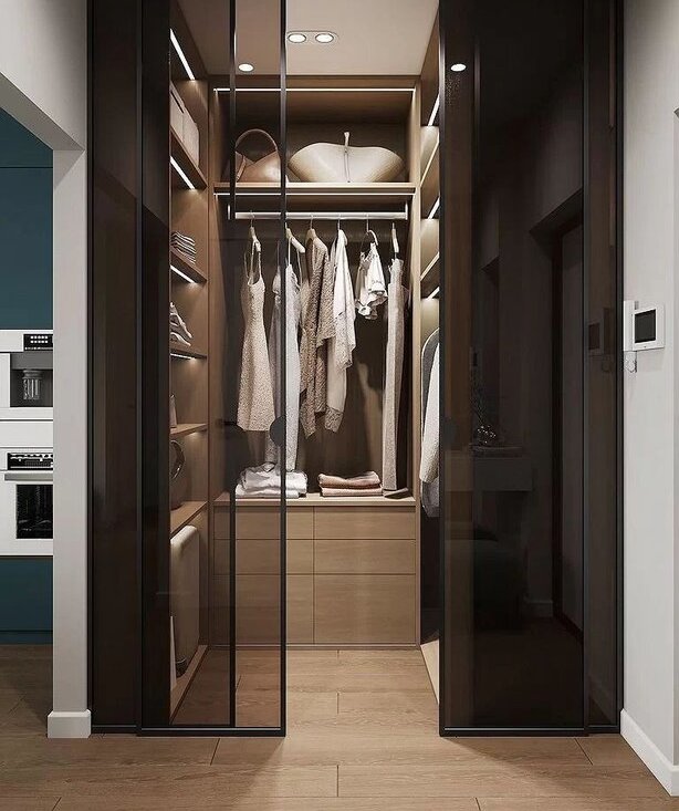 Кухня оборудована современной техникой. В квартире имеется гардеробная, что добавляет удобства для хранения вещей.