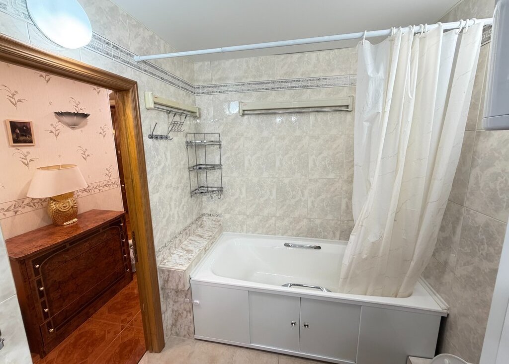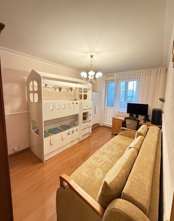 Просторная изолированная планировка: 3 комнаты (18, 14, 14 кв.м), кухня 10.4 кв.м, совместный санузел, холл, балкон + лоджия. Просторные комнаты, много света. Теплый пол в ванной. Спокойные соседи.