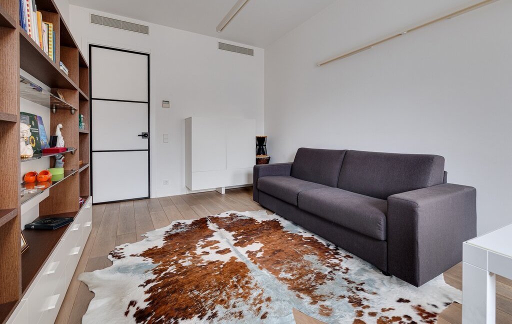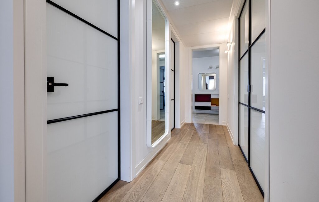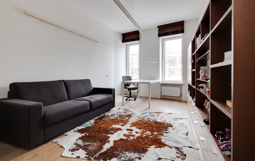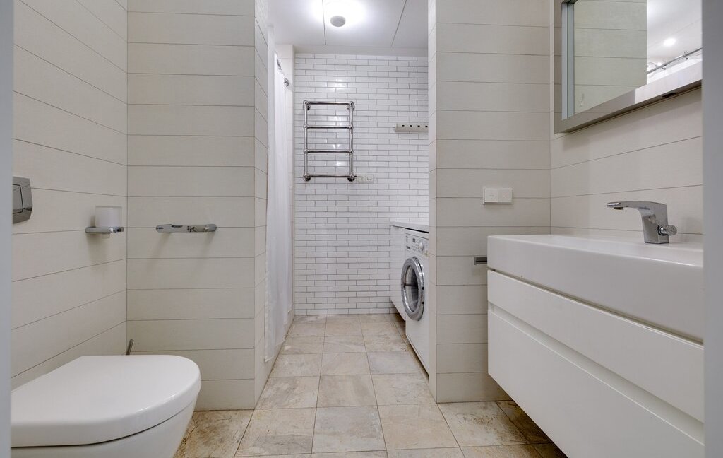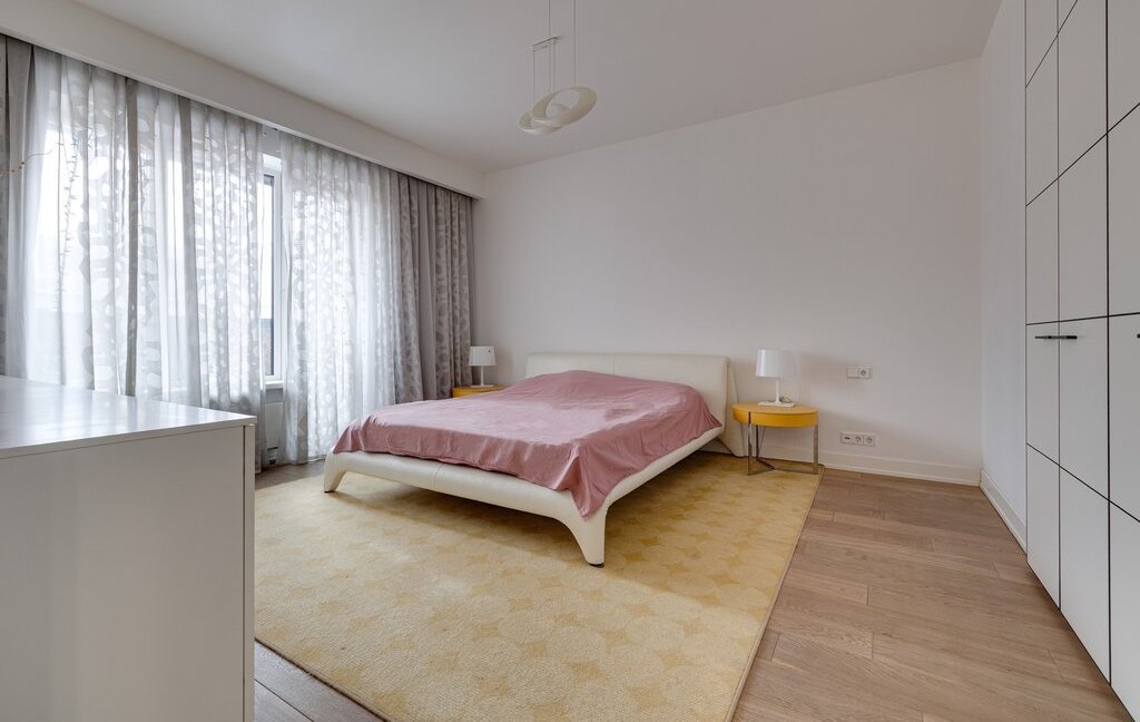 2 спальни: одна с кроватью размером king size и лоджией, вторая с диваном и мини-кабинетом; гостиная c зоной smart TV, кухня-столовая, гардеробная, 2 уборные с ванной и душевой, постирочная, изобилие мест хранения, высокоскоростной Wi-Fi.
