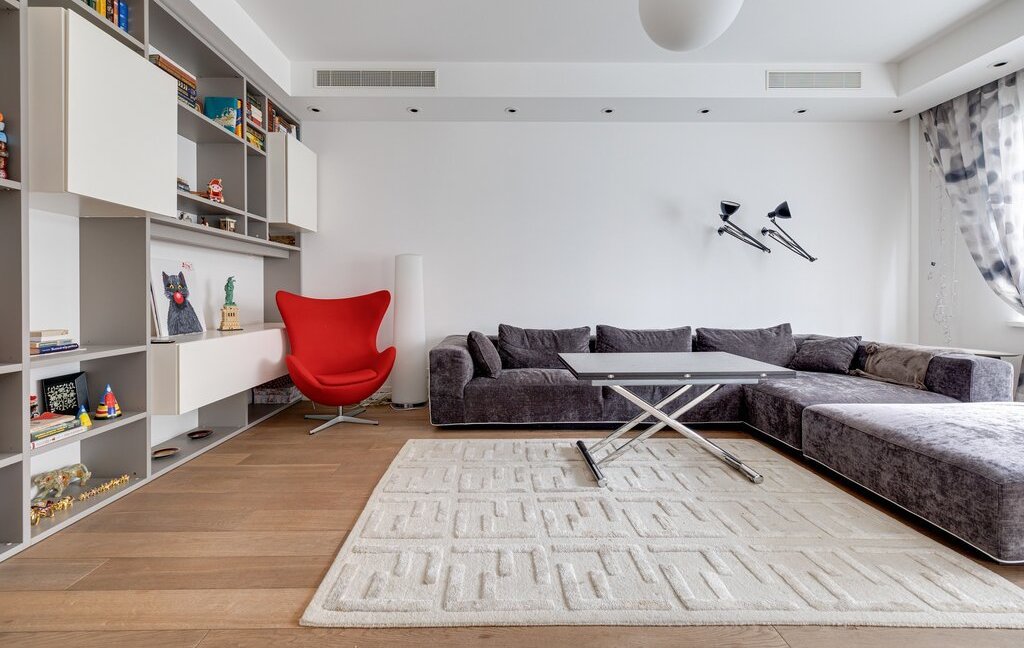 Квартира полностью оборудована функциональной и современной техникой, мебелью и декором для комфортного проживания.