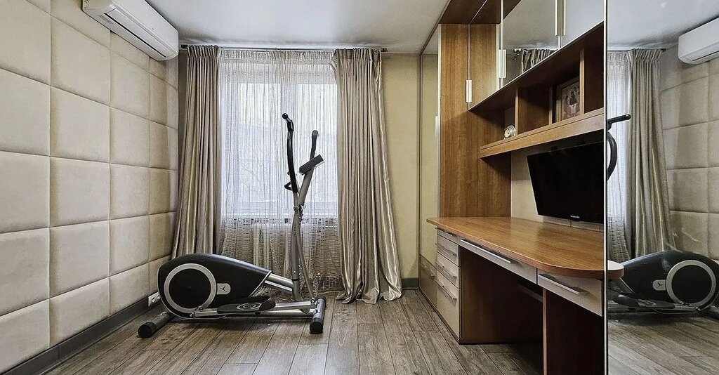 Третья спальня/кабинет соседствует с гостиной. Эта комната с дополнительной шумоизоляцией и стеной акустических панелей. По вашим предпочтениям оборудуется диваном или кроватью.
