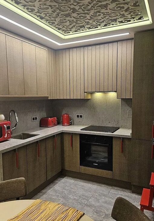 Четвёртое обособленное помещение это кухня. Это удобно, если с вашей семьей постоянно проживает няня/помощница по хозяйству. Ваш покой в кухне-гостиной не будет нарушен хаосом готовки и присутствием постороннего человека. В то же время Вы всегда сможете сами сварить кофе и пожарить яичницу. Также мы готовы оборудовать это пространство под Ваши предпочтения (кабинет/спальня/творческая мастерская).