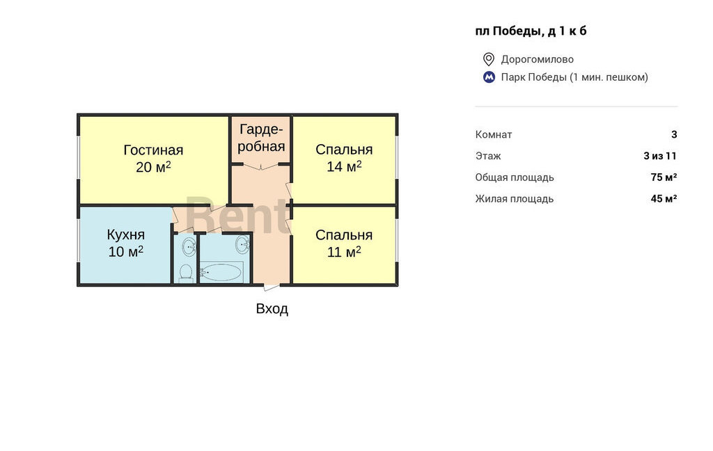 3-комнатная квартира: Москва, площадь Победы, 1кБ (75 м²)
