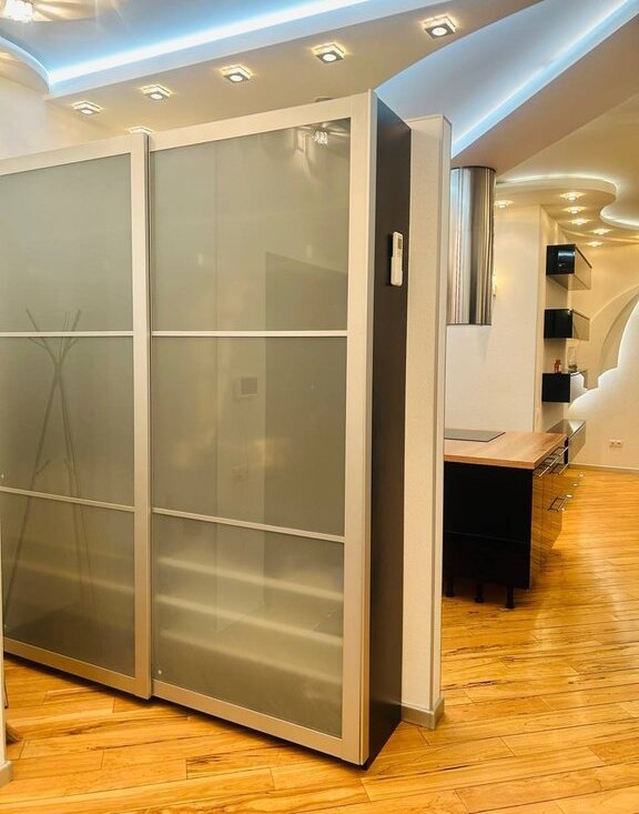 Двери: Итальянская входная группа с высшим уровнем безопасности. Межкомнатные двери — стильные выдвижные системы со стеклом.
