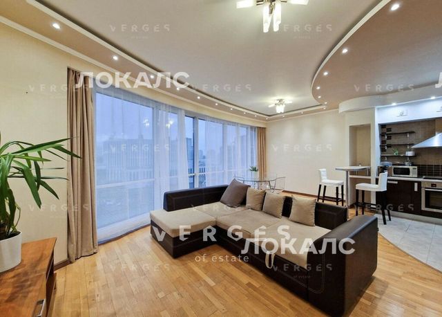 В аренду предлагается просторная квартира с панорамными видами на прилегающую территорию. В квартире выполнен качественный ремонт. По планировке: студийная зона, 2 спальни, 2 санузла, 2 гардеробные. Гостиная комната разделена на зону отдыха с мягким диваном и столовую зону. На кухне установлен кухонный гарнитур с полным комплектом бытовой техники. Санузлы оборудованы качественной сантехникой (ванна, душ. кабина). Комиссия 50%