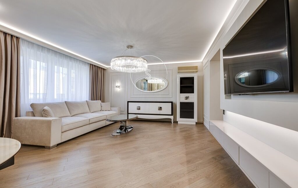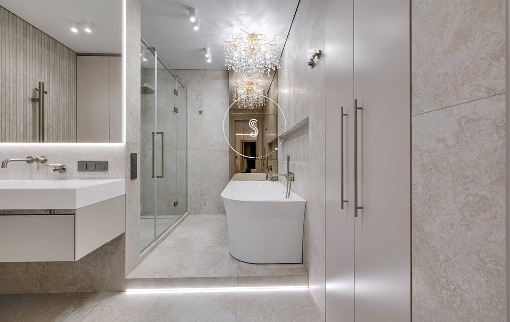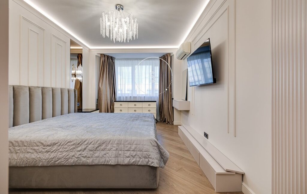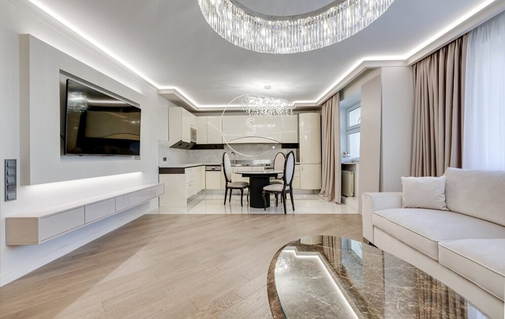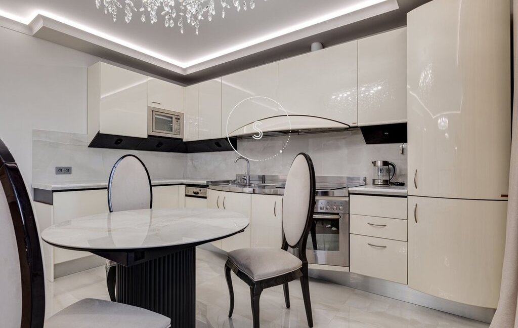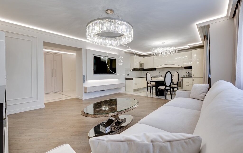 Лот 802. Новый ремонт! Предлагается 3-х комнатная квартира с отделкой в современном стиле. Только что закончен ремонт - всё новое. Планировка: просторный холл, гостиная и кухня образуют единое пространство, две спальни, один санузел с ванной и душевой кабиной, две лоджии. Кондиционирование. Квартира укомплектована элегантной итальянской мебелью и бытовой техникой. Машино-место на закрытой территории дома.