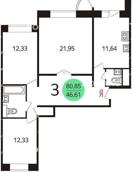 3-комнатная квартира: Москва, Псковская улица, 9к2 (80.85 м²)