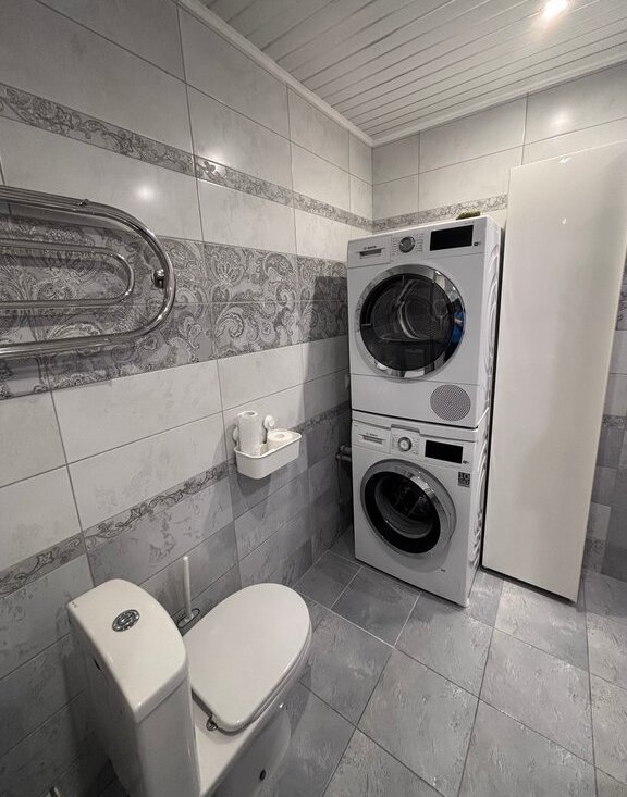 Сама квартира технически оснащена всем для комфортного проживания - кондиционер, холодильник, микроволновая печь, посудомоечная, стиральная и сушильная машины, телевизор, электрогриль.