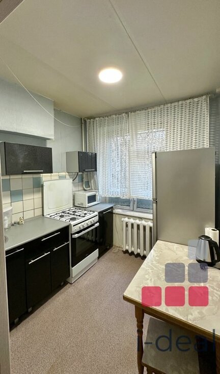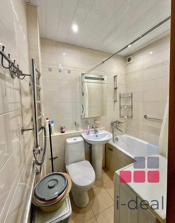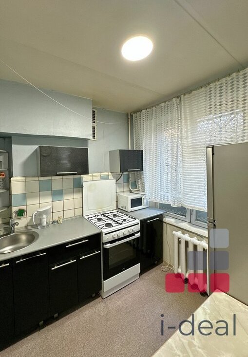 Кухонный гарнитур , обеденный стол, газовая плита . Санузел совмещенный с полноценной ванной. Металлическая дверь. Окна выходят на тихий зеленый во двор.
