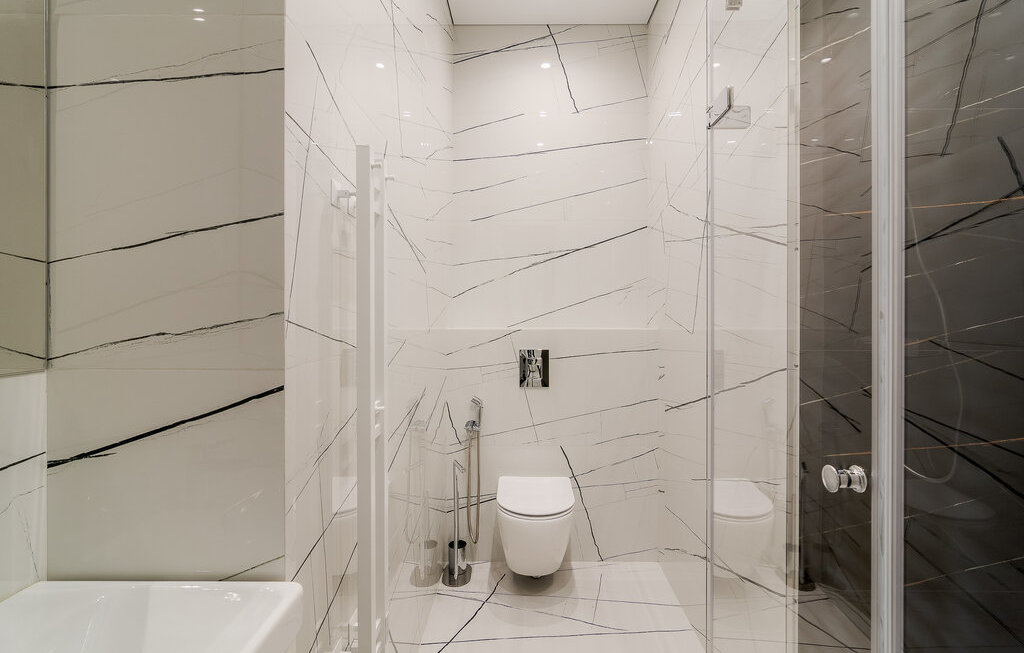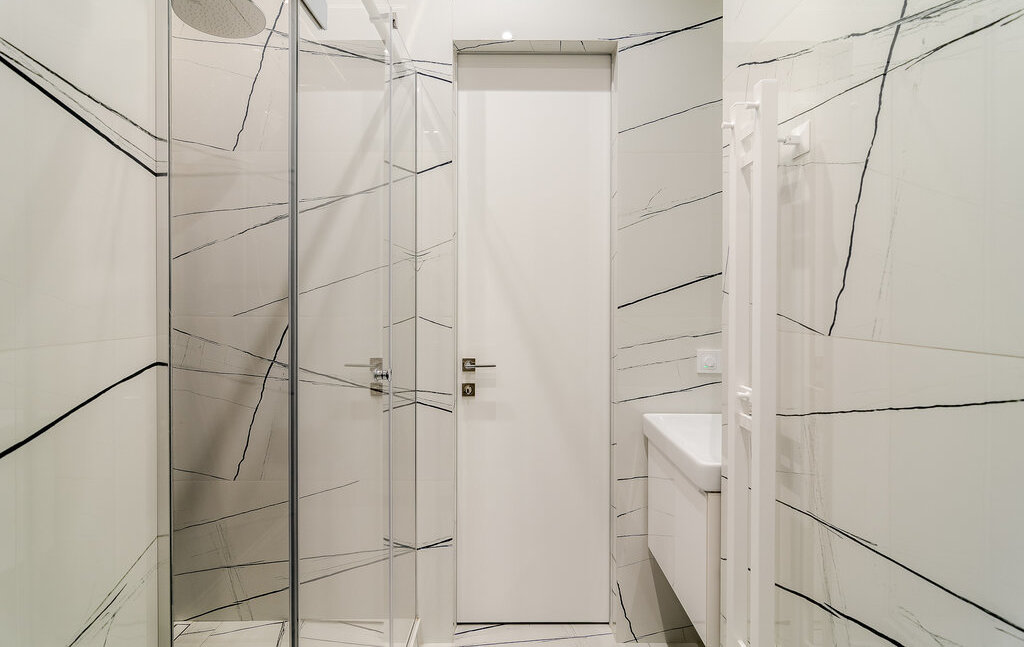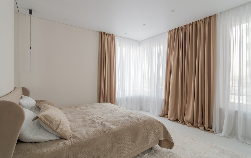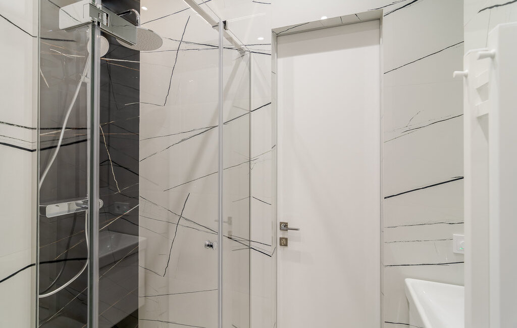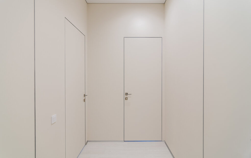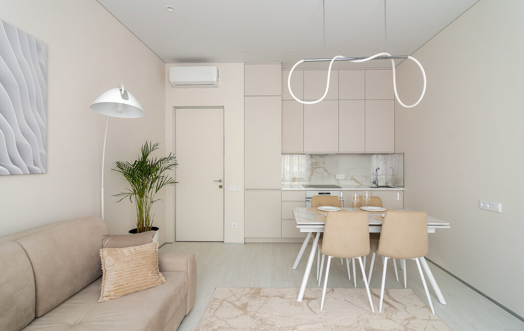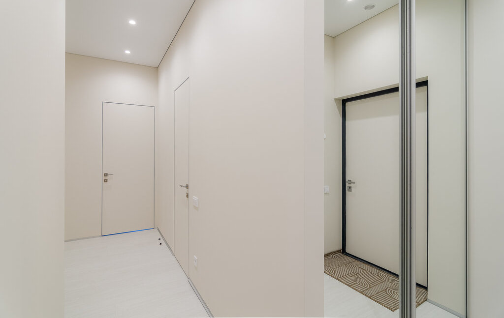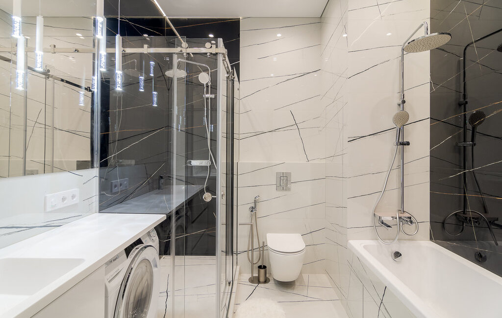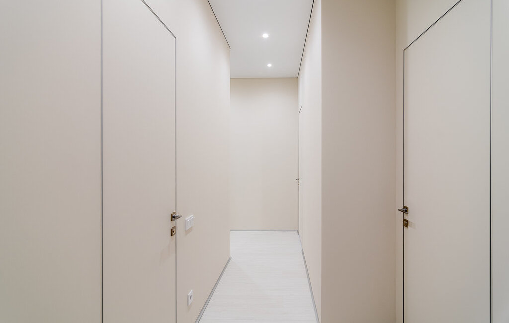 Встроенная техника: холодильник, духовой шкаф с СВЧ, варочная поверхность, стирально-сушильная и посудомоечная машина.