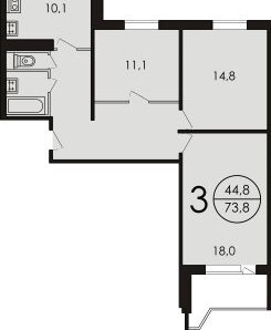 3-комнатная квартира: Москва, Шелепихинское шоссе, 19 (76 м²)