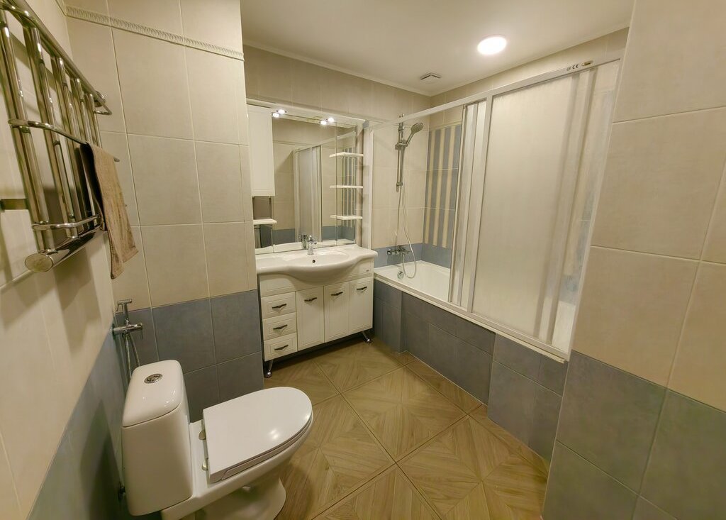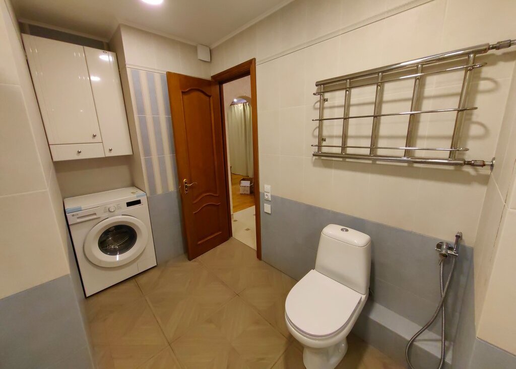 Два полностью новых нетронутых санузла с теплым полом, холодильник и стиральная машина только что из магазина, кухонный гарнитур, бытовая техника. Кондиционеры во всех комнатах. На полу свежий паркет и новая плитка.