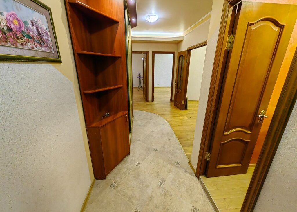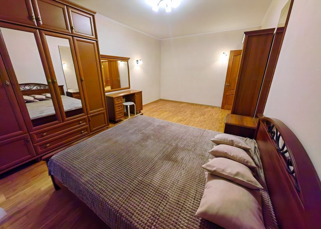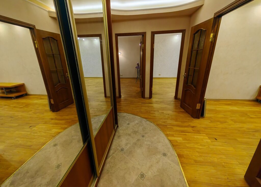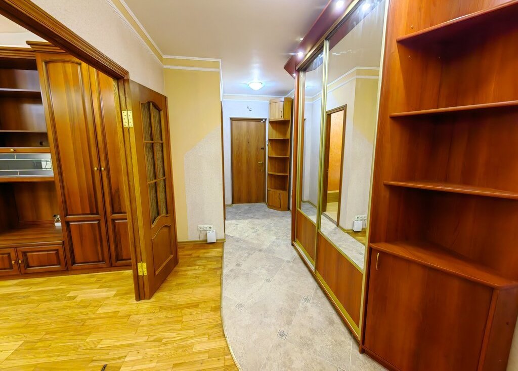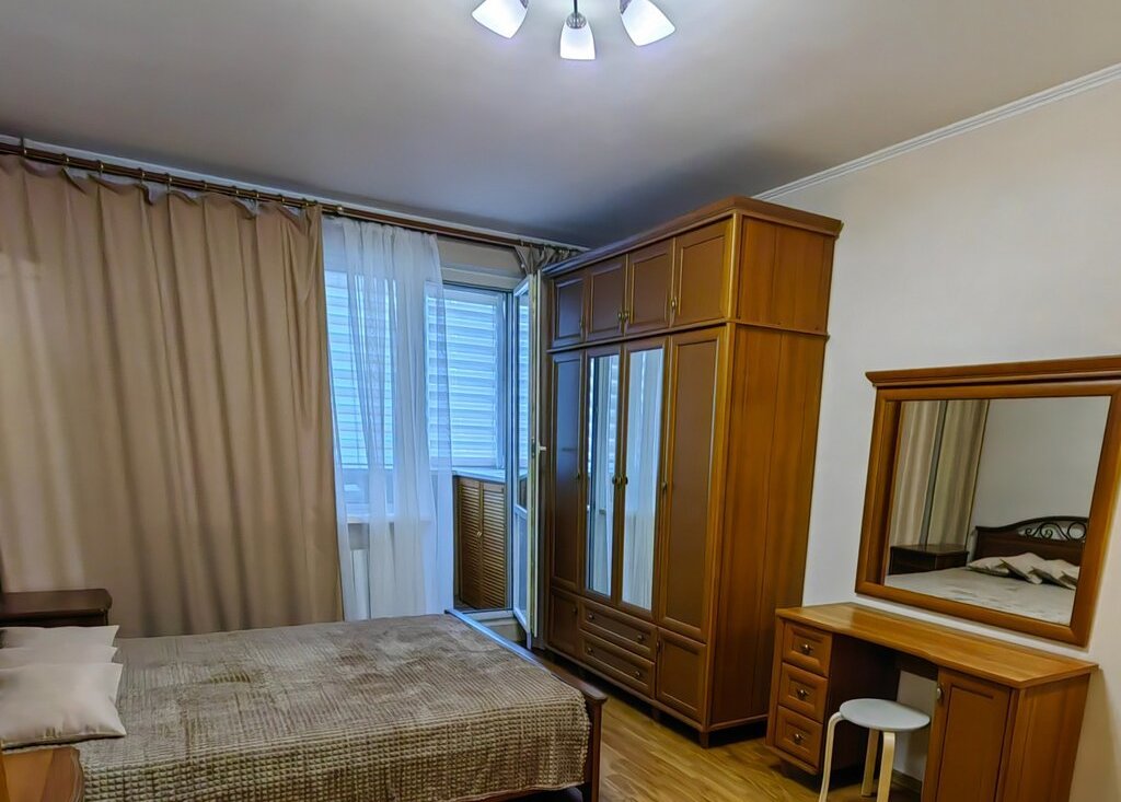 Уютная просторная кухня для всей семьи, новый удобный гарнитур. Спальня полностью укомплектована мебелью в классическом стиле. Прекрасная мебель в гостиной. В прихожей вместительный шкаф с зеркалами.