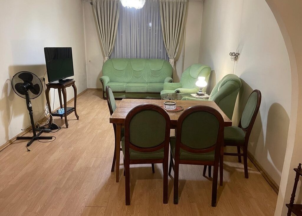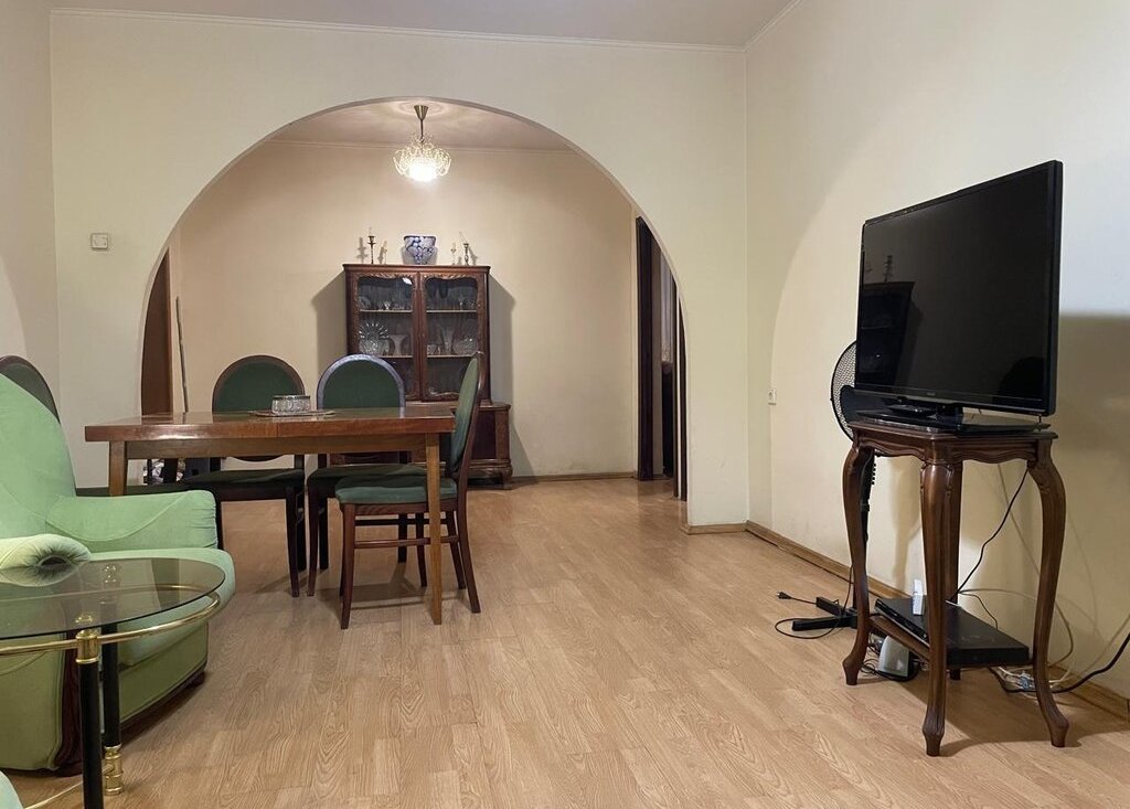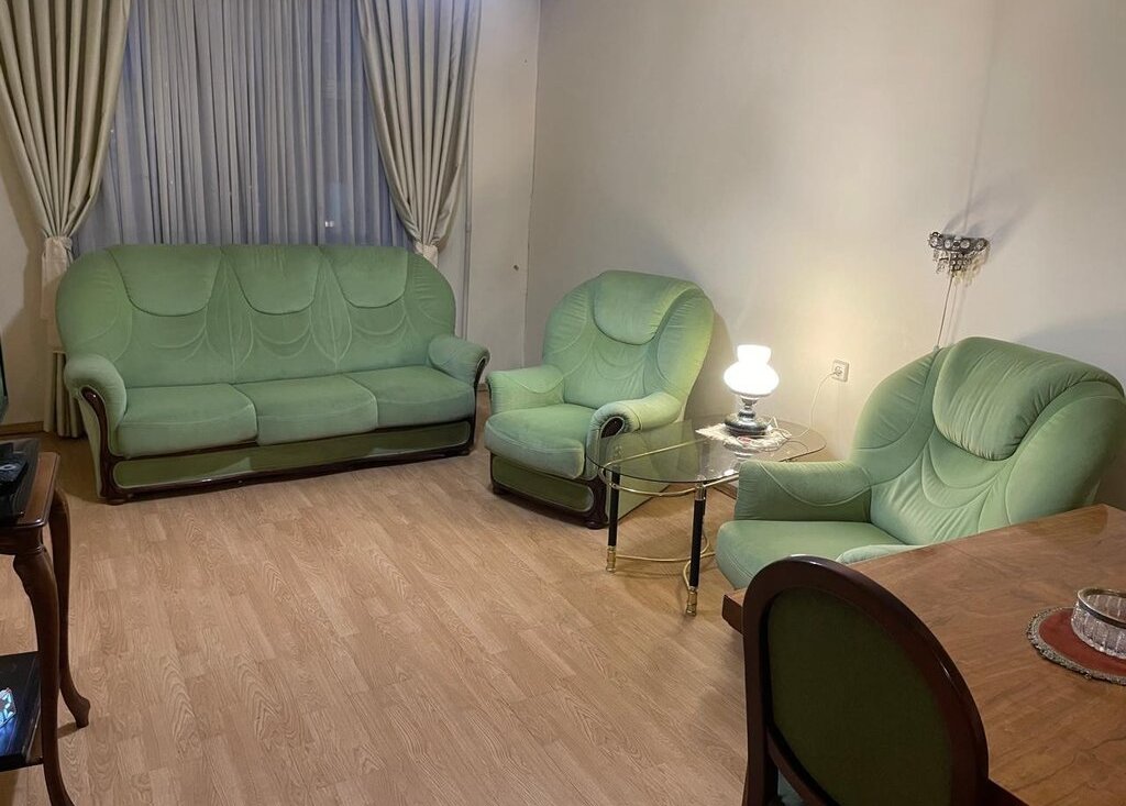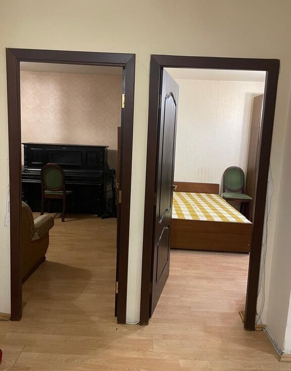 Три комнаты, две изолированные спальни и общая гостиная, отдельно кухня, санузел изолирован. Есть вся необходимая мебель, бытовая техника и посуда.