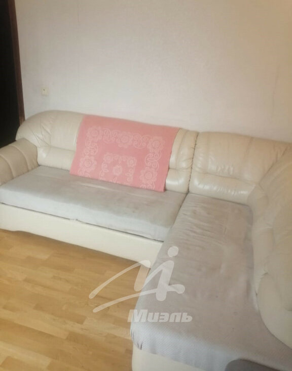 В квартире 2 с/у, квартира площадью 98 м. Комната меблирована, большой раскладной диван, большой шкаф, стол , стулья, из бытовой техники холодильник, стиральная машина, микроволновка. На полу в комнате паркет.