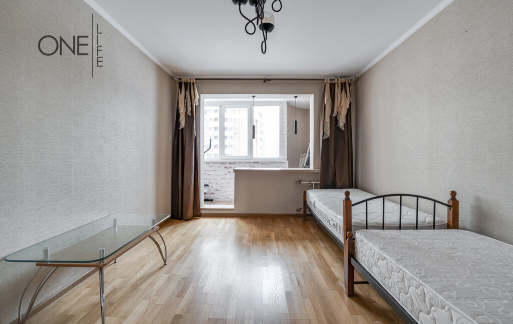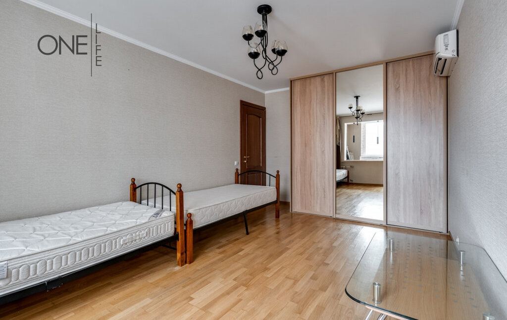 Квартира обладает общей площадью 75 квадратных метров, с изолированными спальнями, распашной планировки - окна смотрят на две стороны. В квартире есть вся необходимая бытовая техника и мебель.