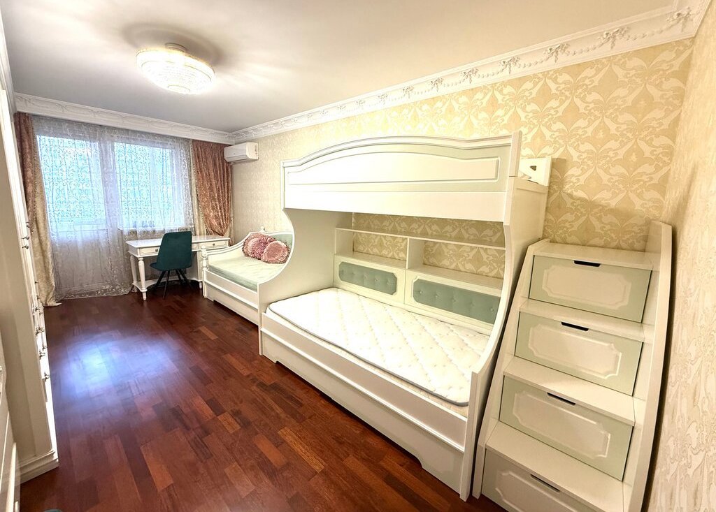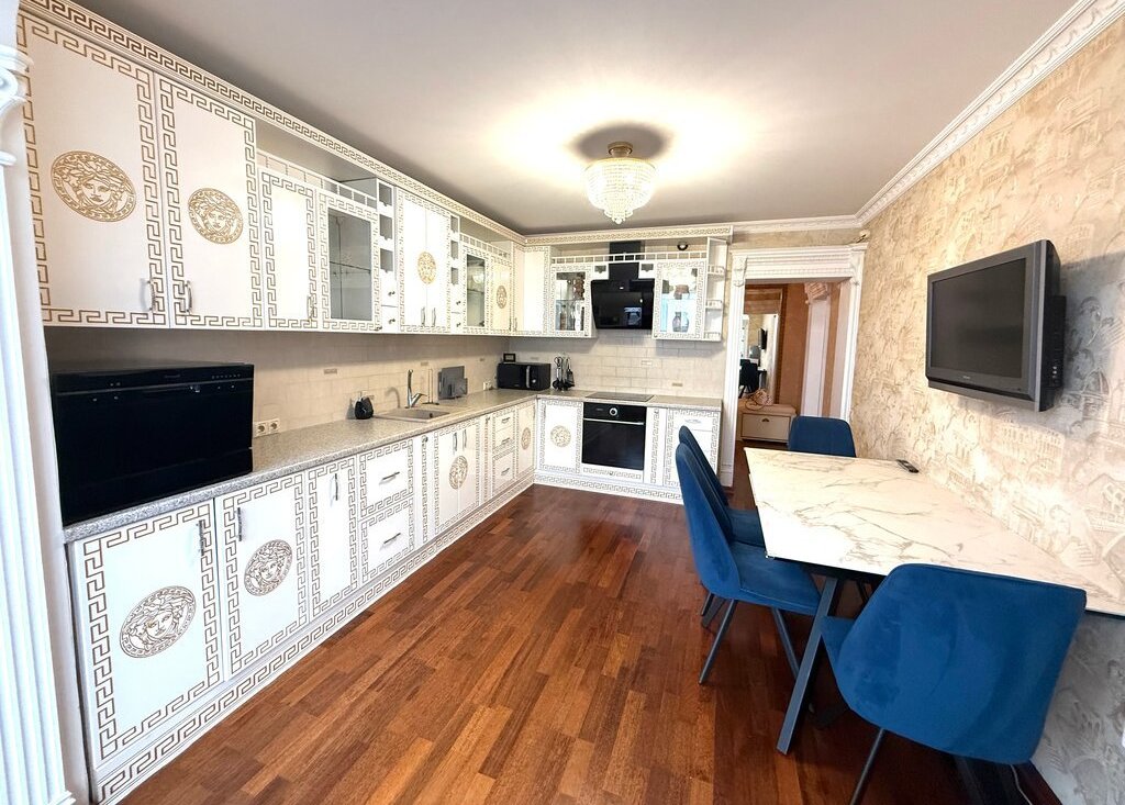 Трехкомнатная квартира с 2 изолированными спальнями и гостиной, 1 сан. узел, кухня оснащена всем необходимым для жизни, мебель в квартире дизайнерская выполнена из натурального дерева, в каждой жилой комнате есть кондиционер, wi-fi, имеется пульт охраны при необходимости можно использовать. В шаговой доступности до метро