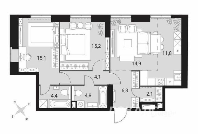 ==ЛОТ 223627 ==БЕЗ КОМИССИИ! Просторная квартира с продуманной функциональной планировкой: кухня-гостиная с двумя окнами, две изолированные спальни, главная спальня с собственным санузлом. При входе — удобная гардеробная-постирочная. Окна выходят на две стороны, обеспечивая хорошее естественное освещение в течение всего дня. Высота потолков — 3 м, межкомнатные двери — 2, 4 м. Отделка и инженерия: Качественный ремонт в соответствии со стандартами бизнес-класса. Полы — дубовая инженерная доска, в санузлах и кухне — широкоформатный керамогранит. Сантехника Paini и Kaldewei, двери из массива бука, дизайнерские радиаторы. Установлены тёплые полы, центральная система кондиционирования, «умный дом», защита от протечек. Усиленная шумоизоляция полов и стен обеспечивает комфортное проживание. Мебель и техника: Кухня полностью оборудована встроенной техникой Koenig: индукционная варочная панель, посудомоечная машина, микроволновая печь. Дополнительно установлены измельчитель пищевых отходов и система фильтрации питьевой воды. Холодильник Maunfeld в ретро-стиле. В квартире есть стиральная и сушильная машины, спальная и столовая группы, мягкая мебель. Под арендатора приобретаются: матрас, шкаф в спальню и система хранения в кладовой.