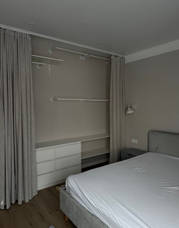 Большая и светлая квартира, окна выходят на восток, стоят кондиционеры в спальне и кухне-гостиной