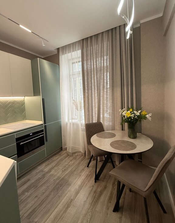 - Кухня оборудованная новой, современной техникой (холодильник, посудомоечная машина, духовой шкаф, вытяжка)