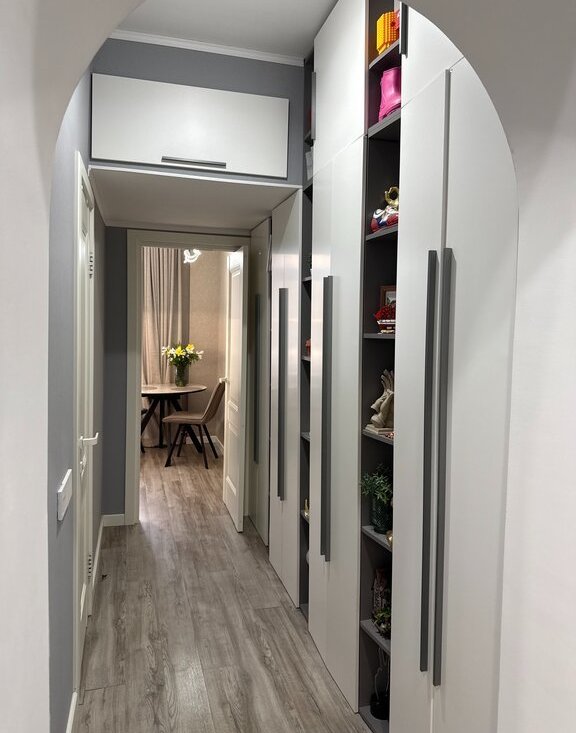 Грамотно организованы зоны хранения, в прихожей установлен большой, вместительный шкаф. Предусмотрена организация дополнительного места хранения в каждой комнате. За счет умного освещения можно менять подсветку для максимального уюта.